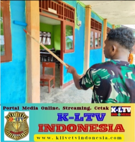 [ SORSEL ] KLTV INDONESIA – Satgas Pamtas RI-PNG Kewilayahan Papua Barat Daya Yonif 762/VYS Pos Johsiro dipimpin oleh Wadanpos Letda Inf Matheus Emmerich beserta 8 (Delapan) orang anggota melaksanakan kegiatan bakti TNI yaitu pengecatan ruang kelas SD Inpres 116 Johsiro di wilayah penugasan, bertempat kampung Johsiro, Distrik Moswaren, Kabupaten Sorong Selatan. Selasa (13/08/2024).