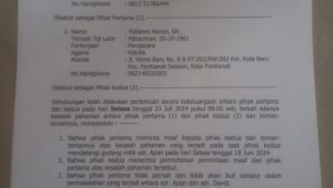 Dedi mengatakan sebenarnya permintaan maaf ini sudah kita lakukan pada tanggal 23 Juli 2024, dimana perdamaian itu Yohanes Nenes SH., mengklaim dirinya selaku pihak kedua.