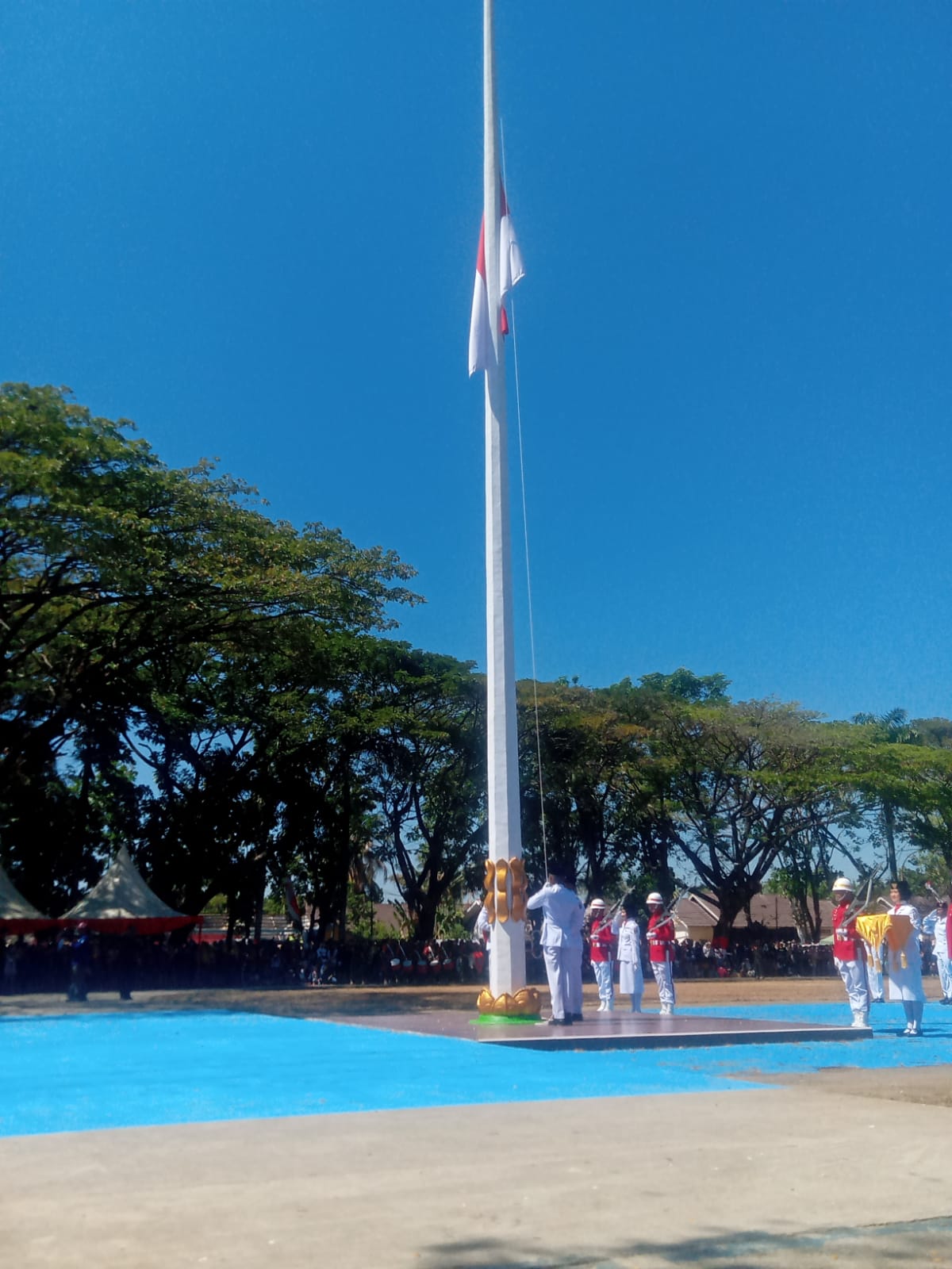 Pasukan pengibar bendera berhasil menjalankan tugasnya dengan lancar.