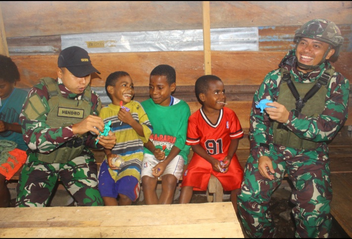 The 503 Task Forces actively organized the Komsos to implement the lessons for the Bombam children. The 503 Task Forces Commander, Lieutenant Colonel Gurbasa Samosir, emphasized that the Komsos is TNI’s commitment to implementing inclusive social communication with all components of the community within the Papua region. The ongoing Komsos by the Soldiers had successfully invited the Bombam children to visit the Post and learn to sing National Songs.