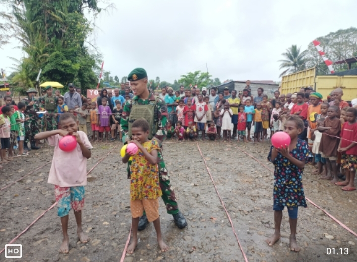 [ KREPKURI NDUGAKlivetvindonesia.com- Satuan Tugas Batalyon Infanteri (Satgas Yonif) Para Raider 503/Mayangkara Kostrad, sebagai salah satu Satuan Jajaran Komando Operasi HABEMA di Papua, tengah melaksanakan tugas Operasi Pengamanan Perbatasan Mobil RI-PNG, khususnya di wilayah Kabupaten Nduga, Provinsi Papua Pegunungan. Pada hari Sabtu, 17 Agustus 2024, Satgas Yonif 503 Kostrad, khususnya Pos Batas Batu pimpinan Lettu Inf Galih Widiharyo Nugroho, melaksanakan pengamanan wilayah di Kampung Mumugu, Distrik Krepkuri. Di tengah kegiatan pengamanan wilayah, Pos Batas Batu mengundang warga Kampung Mumugu, untuk mengikuti rangkaian perlombaan dalam rangka memperingati Hari Kemerdekaan ke-79 Republik Indonesia.
