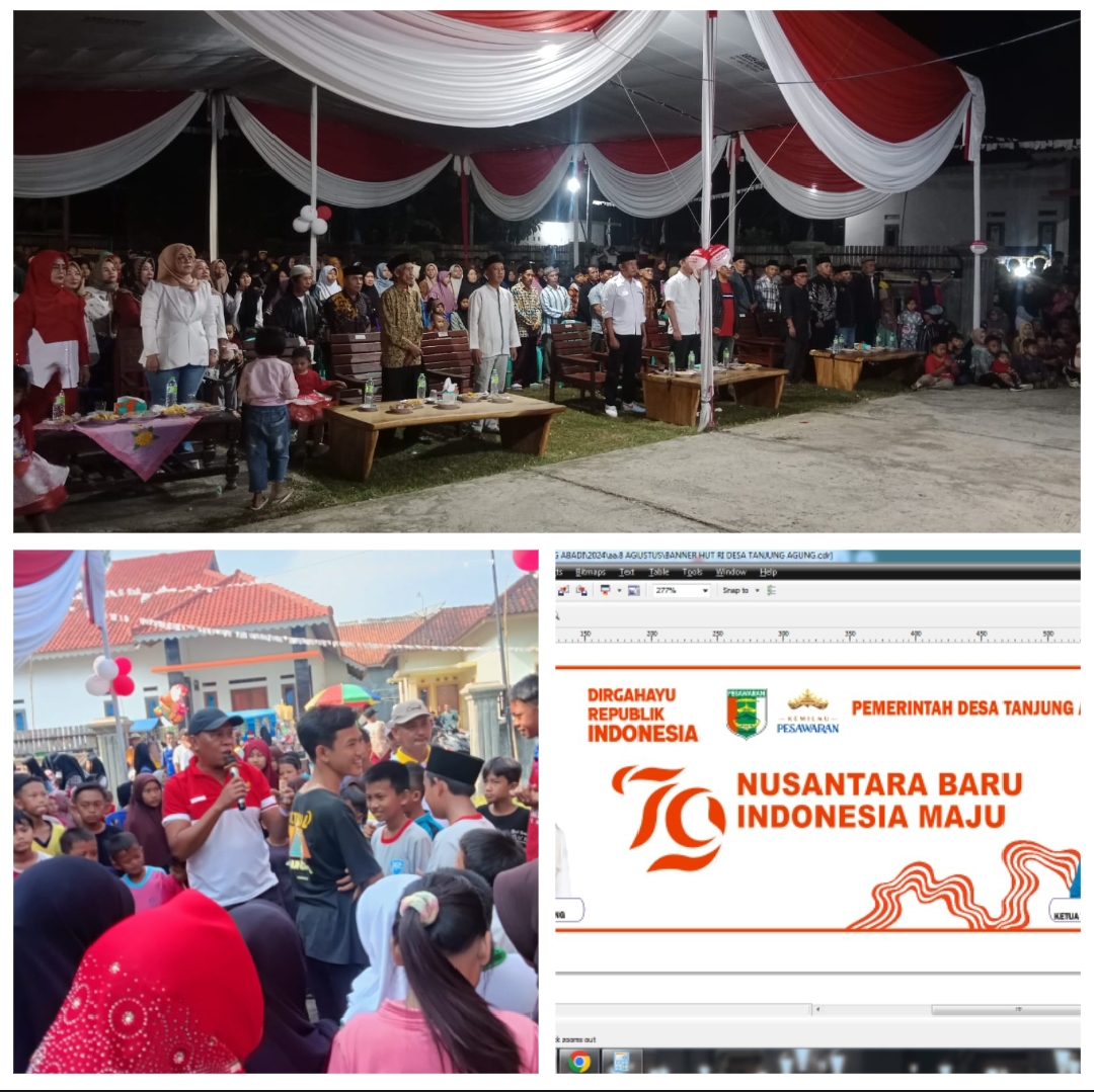 “Merdeka, Merdeka, Merdeka. Saya mengucapkan terimakasih dan apresiasi yang besar kepada seluruh masyarakat Tanjung Agung atas kekompakan dan semangatnya dalam semarak HUT RI ke-79 tahun ini. Dengan bantuan kita semua allhamdulilah kegiatan semarak tahun ini bisa meriah, sukses sampai di malam puncak ini.” Ucap kades dengan penuh gembira dan semangat