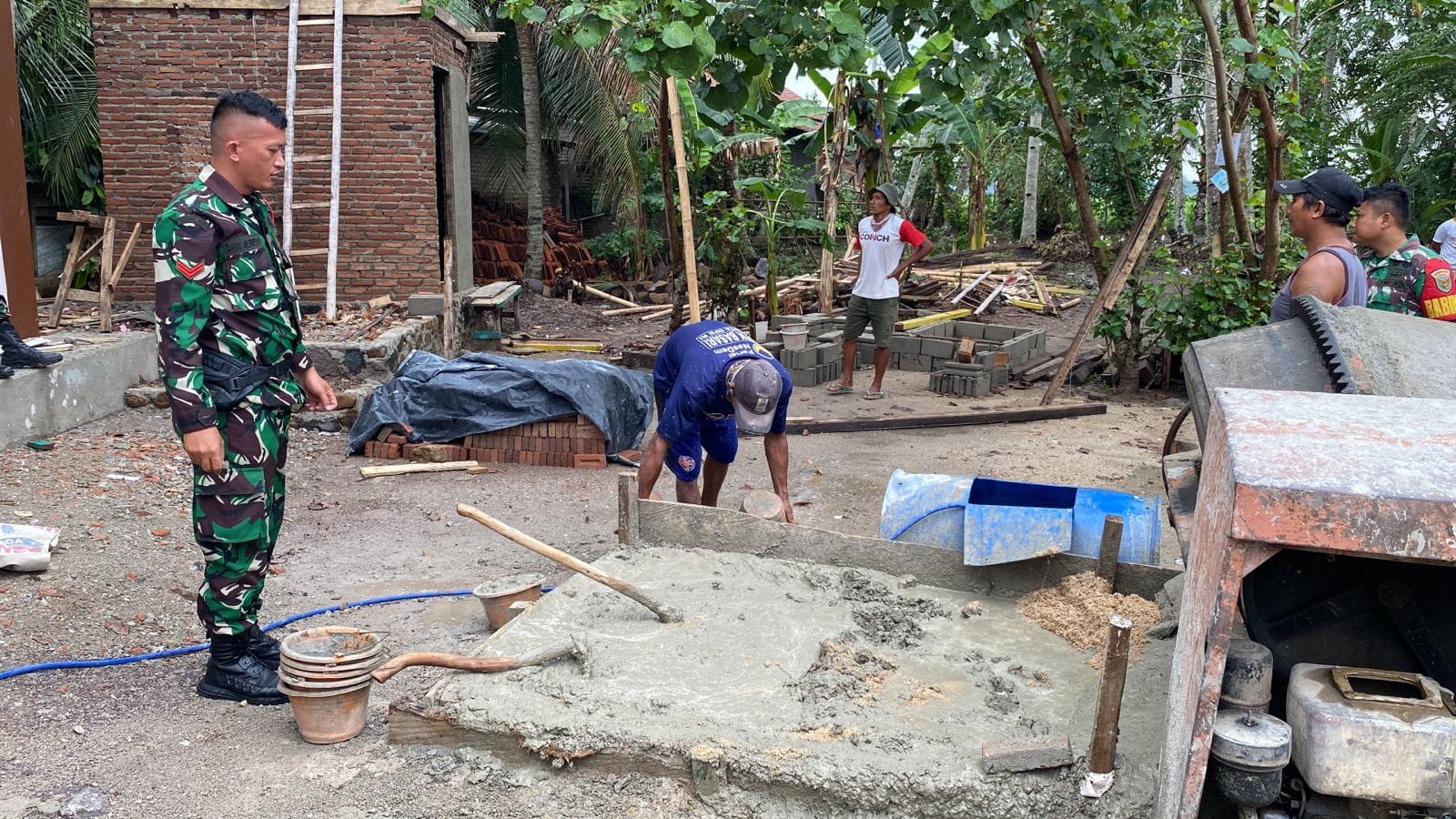 Klivetvindonesia,com. Pesawaran- Babinsa Koramil 421-01/Kedondong Koptu Dami Alfredo begitu melihat warga binaan yang sedang melaksanakan gotong royong merenovasi Mushola dengan sigap dan tanggap Koptu Dami berbaur membantu kegiatan tersebut di Dusun Kebon Pisang Desa Pasar Baru Kecamatan Kedondong Kabupaten Pesawaran. Selasa (20/8/2024).