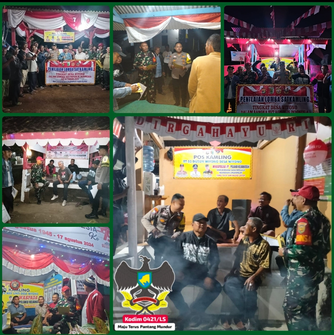 Klivetvindonesia,com. Pesawaran- Babinsa desa Wiyono Koramil 421-02/Gdt, Kodim 0421/LS Sertu Haryono beserta Bhabinkamtibmas Aipda Yekti Andi melaksanakan kegiatan verifikasi/penilaian Lomba Pos Kamling tingkat desa Wiyono yang diselenggarakan oleh Babinsa, Bhabinkamtibmas dan pemerintah desa Wiyono kec. Gedong Tataan Kab. Pesawaran. Senin Malam (19/08/2024).