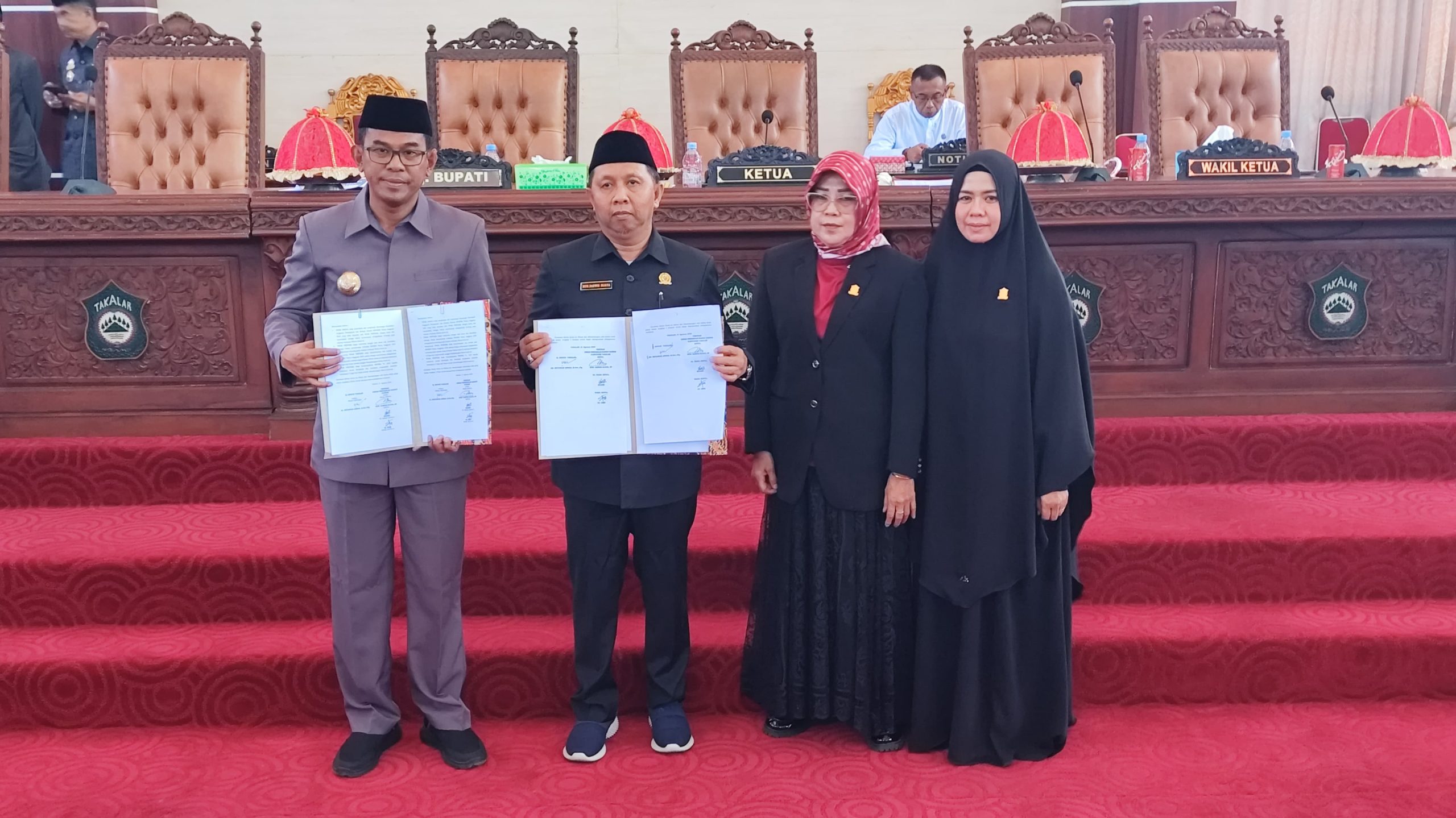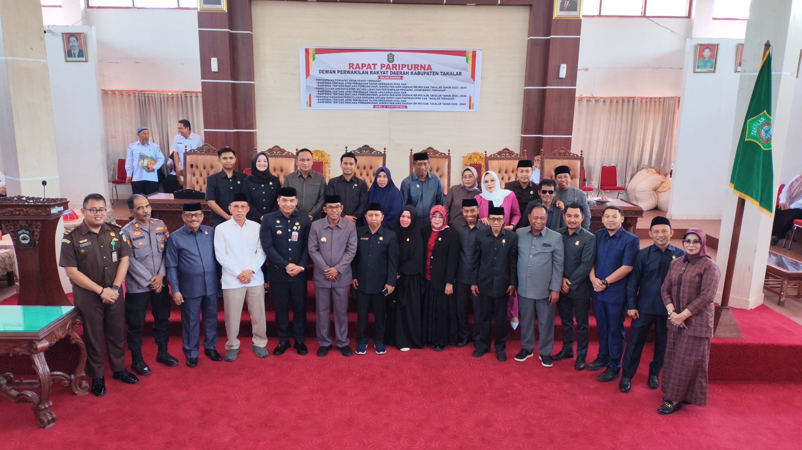 –klivetvindonesia.com– Diskominfo-SP, Rabu 21 Agustus 2024 Pj. Bupati Takalar, Dr. Setiawan Aswad, M.Dev, Plg hadiri Rapat Paripurna DPRD dengan agenda Penandatanganan Persetujuan Bersama antara Bupati dan Pimpinan DPRD Kab. Takalar terhadap Ranperda tentang APBD Perubahan TA. 2024 dan Ranperda tentang Rencana Pembangunan Jangka Panjang Daerah (RPJPD) Kab. Takalar Tahun 2025-2045.