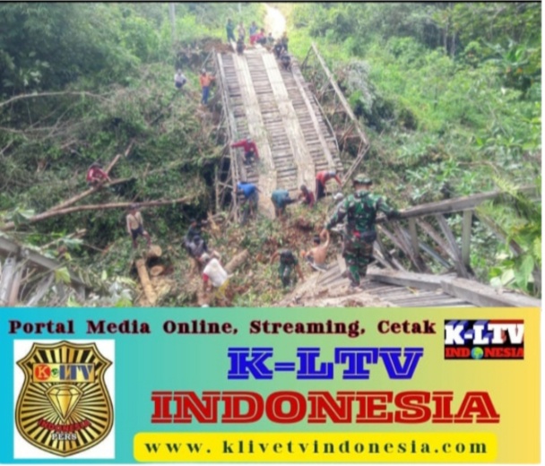 Kapuas Hulu – Satgas Pamtas RI-Malaysia Yonzipur 5/ABW dari Pos Klawik yang di pimpin langsung Danpos Serka Sugianto bersama dengan anggotanya membantu warga mengevakuasi jembatan penyeberangan jenis Bailey yang terputus akibat tertimpa pohon besar karena angin kencang di desa Mensiau, Batang Lupar, Kapuas Hulu, Jum’at (23/8/2024).