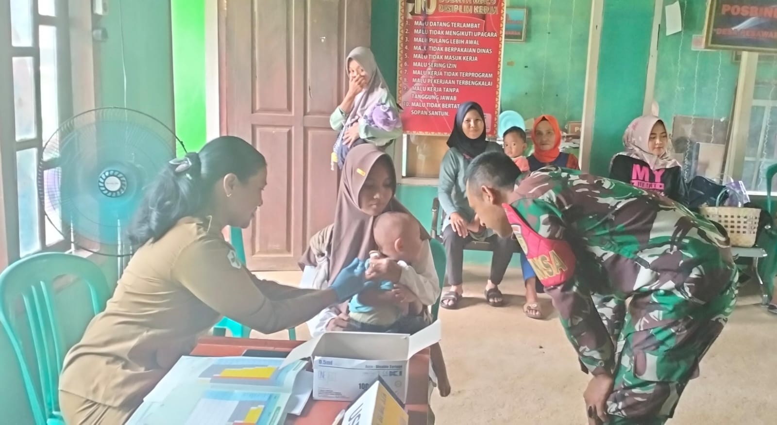 Dengan melakukan penimbangan berat badan Balita, Imunisasi, pemberian Vitamin, serta asupan makanan tambahan, serta mengontrol kesehatan ibu hamil, yang pada akhirnya untuk mewujudkan masyarakat yang sehat dan sejahtera,” tutup Serma Wahid Hasim.