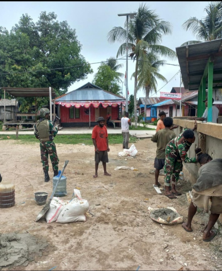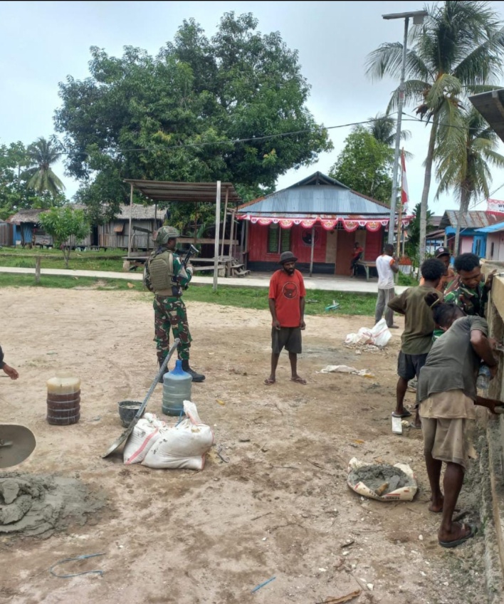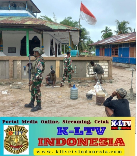 [ SORSEL ] KLTV INDONESI.COM- Satgas Pamtas RI-PNG Kewilayahan Papua Barat Daya Yonif 762/VYS Pos Kokoda melaksanakan gotong royong perbaikan Mushola An-Nur bersama warga di Kampung Tarof, Distrik Kokoda, Kabupaten Sorsel. Minggu (25/08/2024).