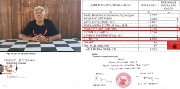 JAKARTA – KLTV INDONESIA –klivetvindonesia.com— Dugaan kolaborasi KPU Kabupaten Karanganyar dengan oknum pengurus DPC PDI Perjuangan Kabupaten Karanganyar yang telah melakukan mal administrasi untuk merubah SK KPU tentang penetapan Suprapto calon terpilih menjadi SK Perubahan Calon terpilih yang perolehan suaranya lebih sedikit dan merupakan pelanggaran berat Pemilu serta diusulkan ke Pj Gubernur Jawa Tengah.