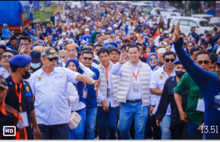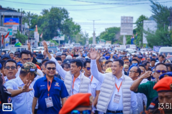 Usai deklarasi calon bupati – wakil bupati Pangkep periode 2024 – 2029, Muhammad Yusran Lalogau – Abd Rahman Assegaf diiringi ribuan massa berjalan kaki menuju kantor KPU Pangkep untuk mendaftar.