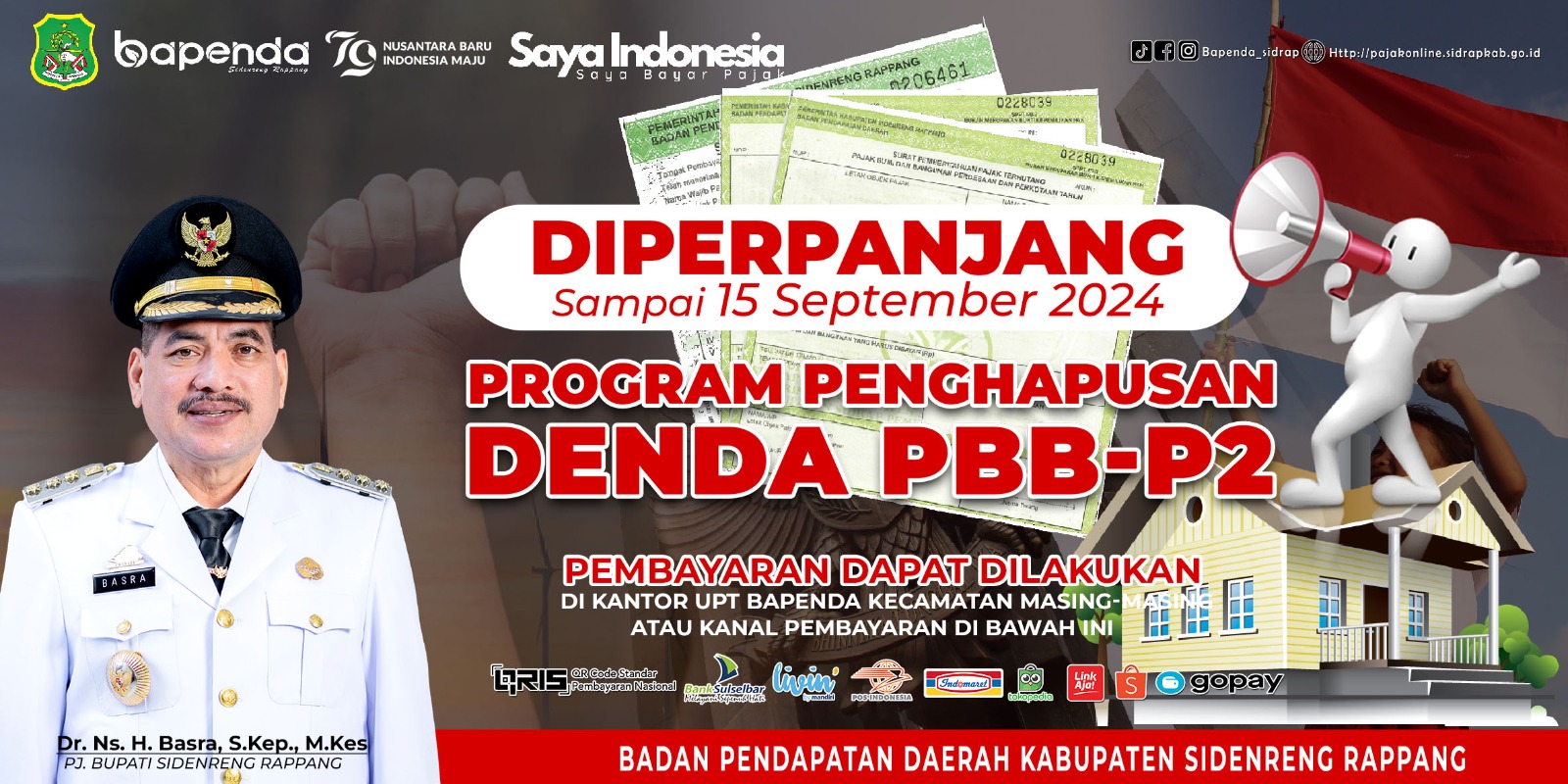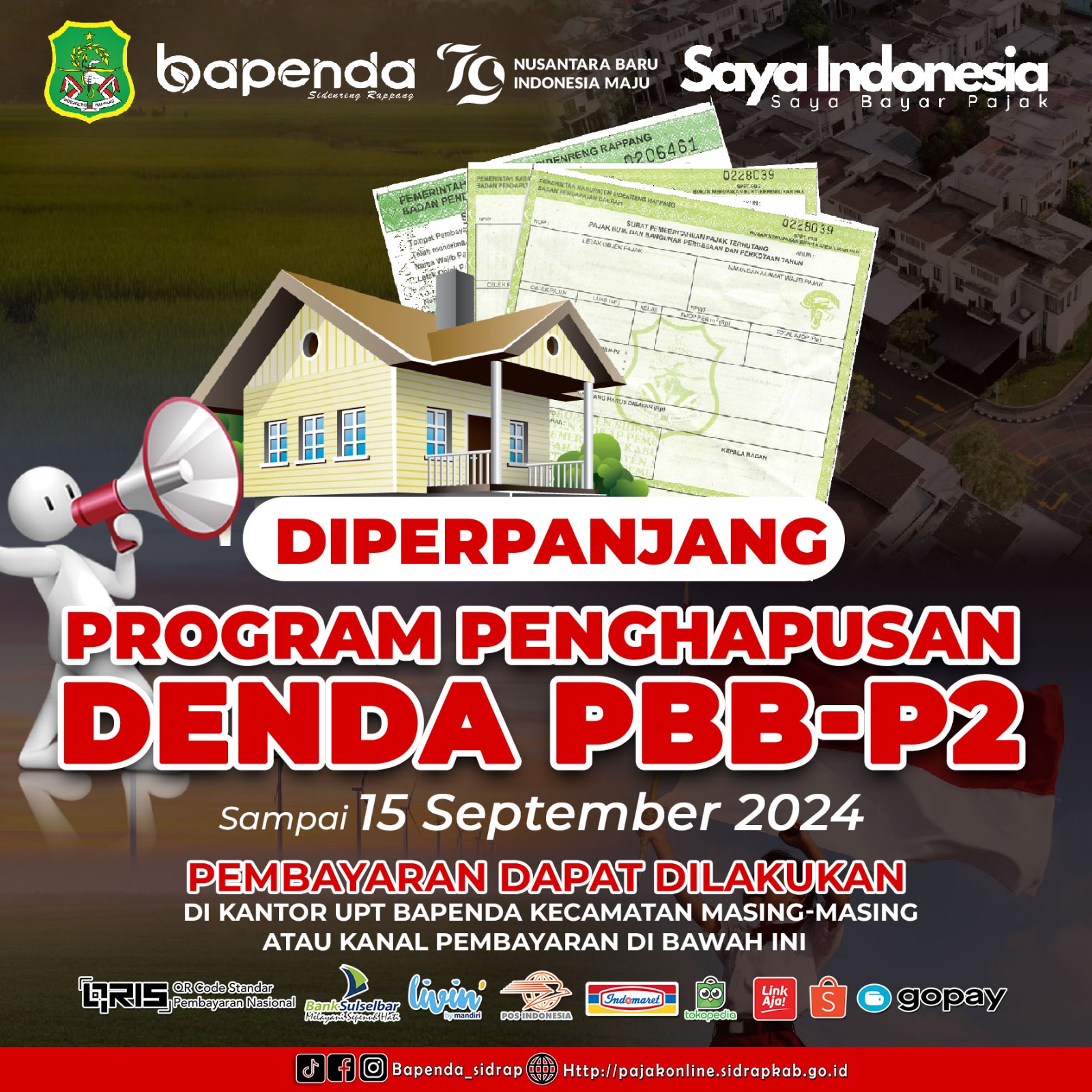 –klivetvindonesia.com— Pemerintah Kabupaten Sidrap memperpanjang program penghapusan denda Pajak Bumi dan Bangunan Pedesaan dan Perkotaan (PBB-P2). Program yang sedianya berakhir pengunjung Agustus lalu, kini diperpanjang hingga 15 September 2024.