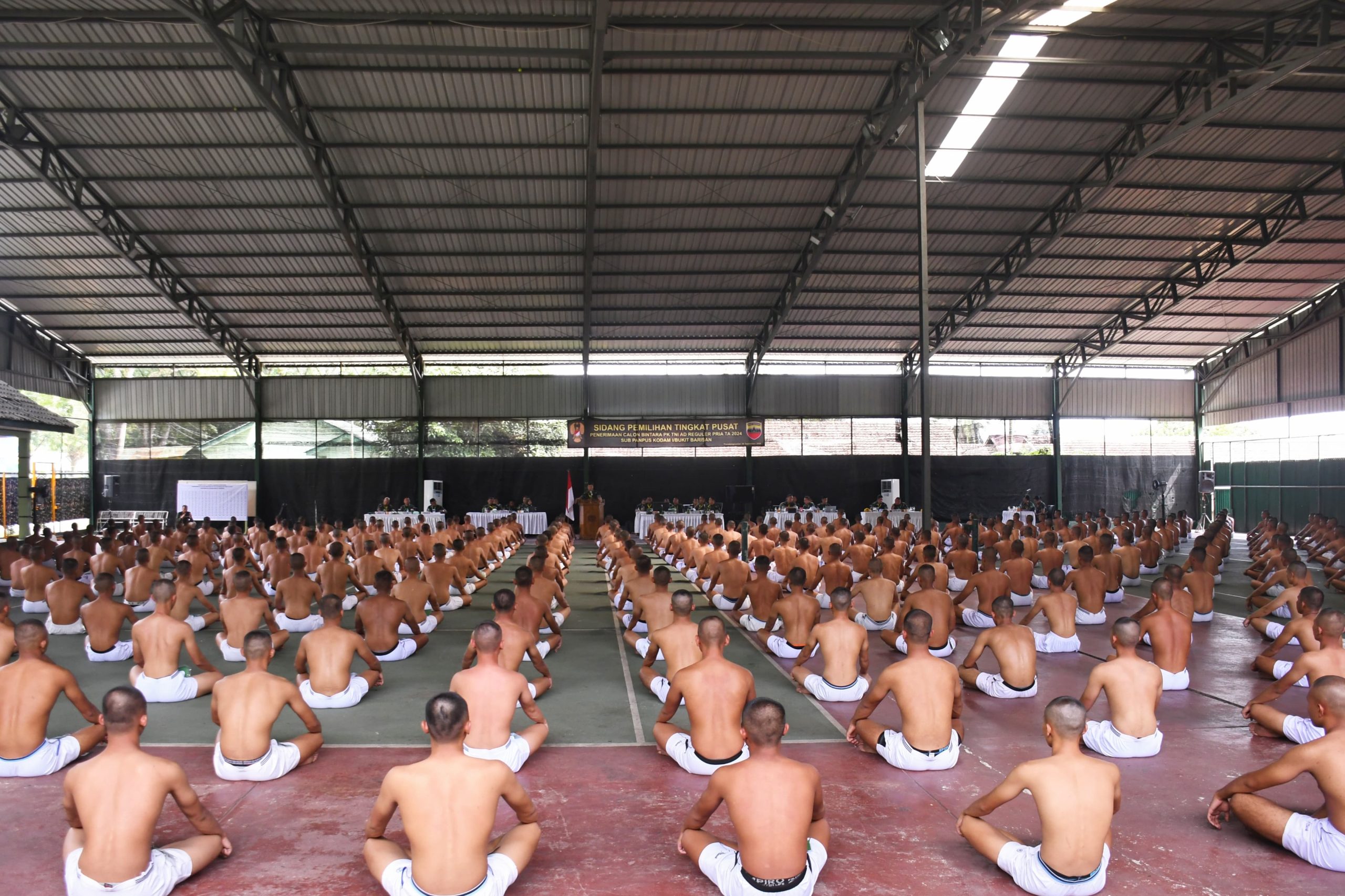Dalam kegiatan ini, sejumlah peserta seleksi Calon Bintara PK TNI AD Sub Panpus Kodam I/BB TA 2024 juga ditampilkan di Lapangan Tenis Indoor Jenderal AH Nasution Rindam I/BB untuk melaksanakan sidang.