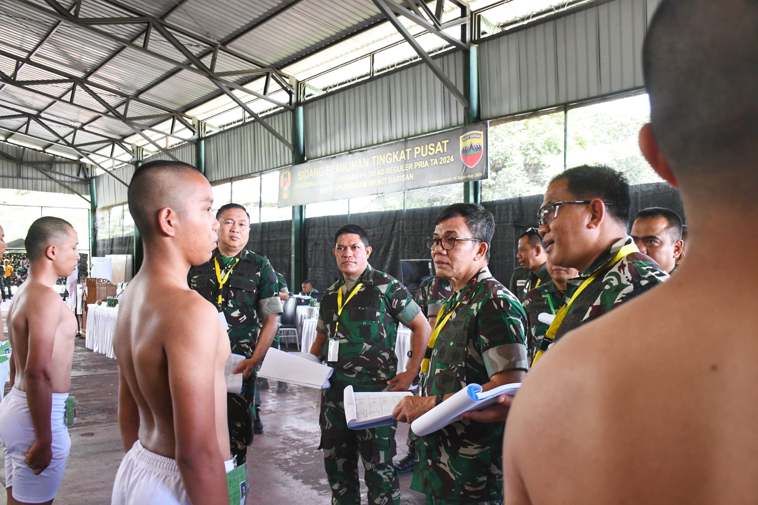 –klivetvindonesia.com– Pematangsiantar – Pangdam I/BB, Mayjen TNI Mochammad Hasan memimpin langsung Sidang Pemilihan Tingkat Pusat Penerimaan Calon Bintara PK TNI AD Reguler Pria TA 2024 Sub Panpus Kodam I/Bukit Barisan, Rabu (4/9/2024).