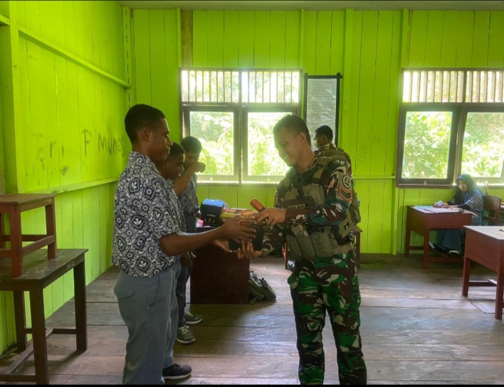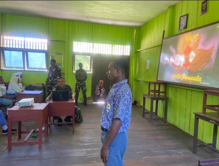 [ SORSEL ] KLTV INDONESIA.COM- Bertempat di SMA N 01 Kokoda Satgas Pamtas RI-PNG Kewilayahan Papua Barat Daya Yonif 762/VYS dipimpin oleh Wadanpos Kokoda Sertu Irzal melaksanakan kegiatan Teritorial dengan menerapkan metoda Bintahwil (Pembinaan Ketahanan Wilayah) yaitu dengan mengenalkan materi waawasan kebangsaan (Wasbang) kepada para siswa dan siswi SMA N 01 Kokoda. Jumat (06/09/2024)