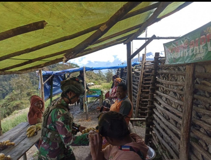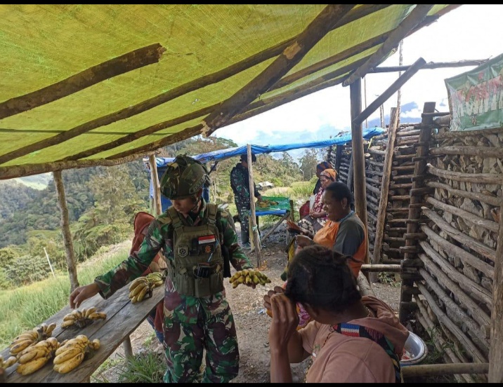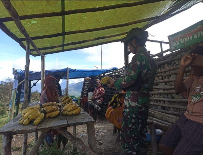 [ PUNCAK PAPUA TENGAH ] KLTV INDONESIA.COM- Satgas Mobile Yonif 323 Buaya Putih melalui TK Pintu Jawa melaksanakan Kegiatan “Rosita” (Borong Hasil Tani) dengan membeli hasil tani dari mama-mama di Kampung Bionidikime, Distrik Megeabune, Kabupaten Puncak, Papua Tengah, Sabtu (07/09/2024).