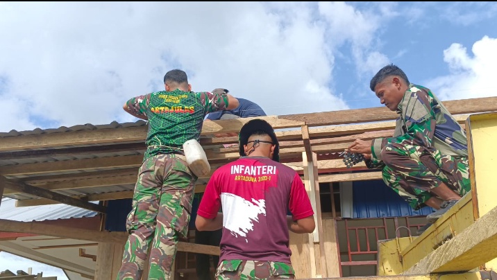 [ YALIMO ] – Satgas Yonif 641/Bru Pos Elelim selalu berupaya membangun rasa kebersamaan dan kerjasama yang kuat untuk masyarakat diwilayah Elelim dengan gerak cepat melaksanakan gotong royong/karya bhakti memperbaiki Gereja GBI Elelim, Distrik Elelim Kabupaten Yalimo, Provinsi Papua Pegunungan, (08/09/2024).