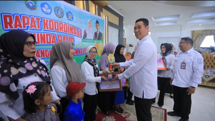 Penyerahan hadiah juara gebyar PAUD, dilaksanakan di aula rujab bupati Pangkep, Rabu(11/9/24).