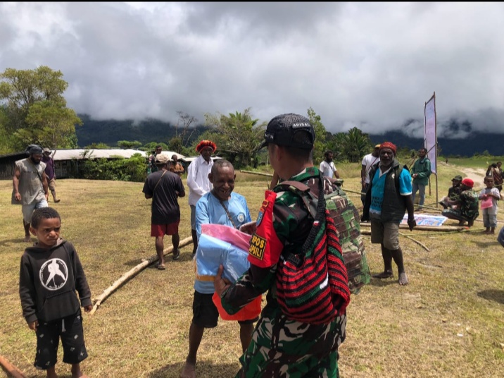 Danpos Apalapsili Lettu Inf Arisal disambut dengan penuh antusias oleh warga setempat, terutama oleh mama-mama Papua. Kegiatan ini bertujuan untuk memastikan berbagi tepat sasaran dan langsung diterima oleh warga dengan sangat senang dan gembira.
