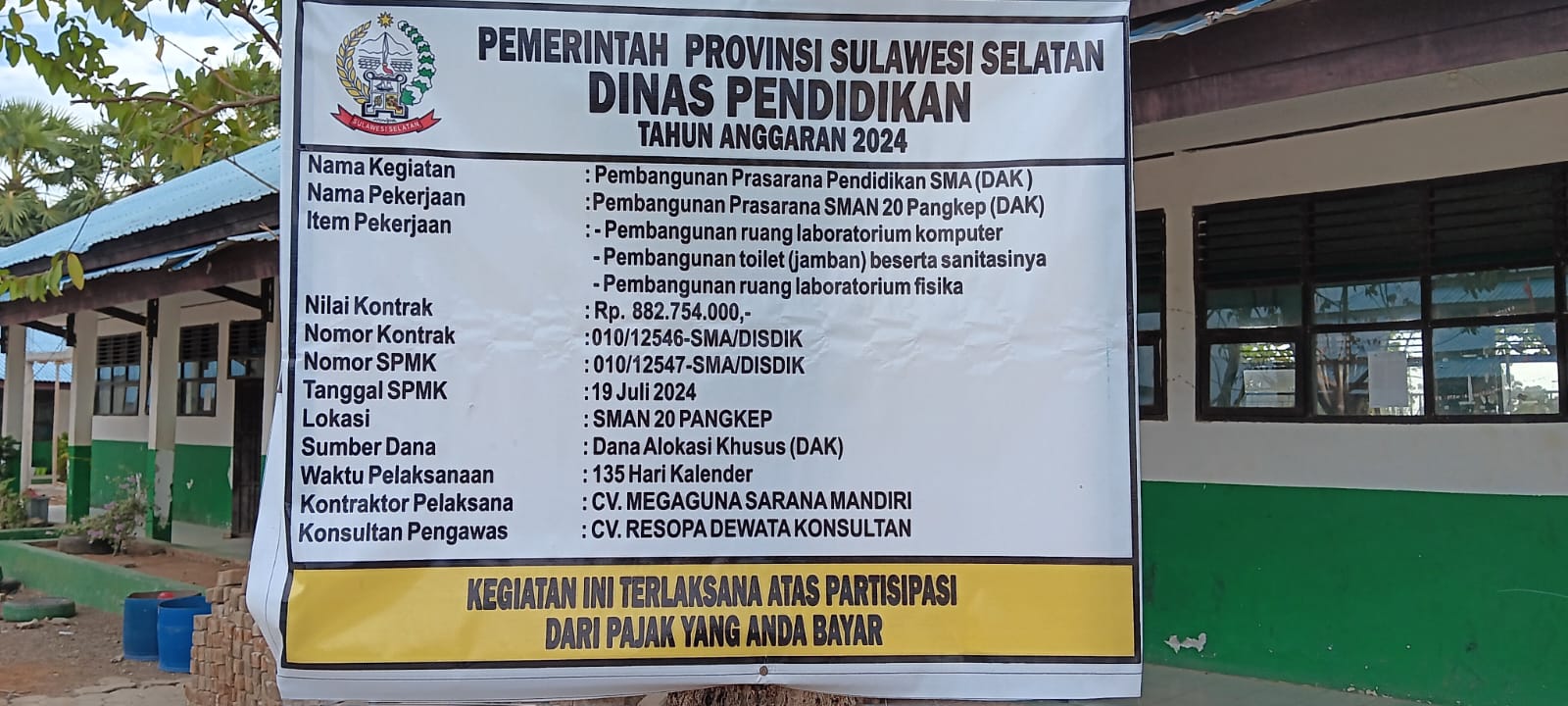 Seperti yang di katakan M. Yusuf Anggota LKIN di Kelurahan Bonto Perak, Kecamatan Minasa te’ne pembangunan prasaran sekolah Menengah Atas Negeri 20 di Pangkep sangat tidak berkualitas dan terkesan asal jadi .