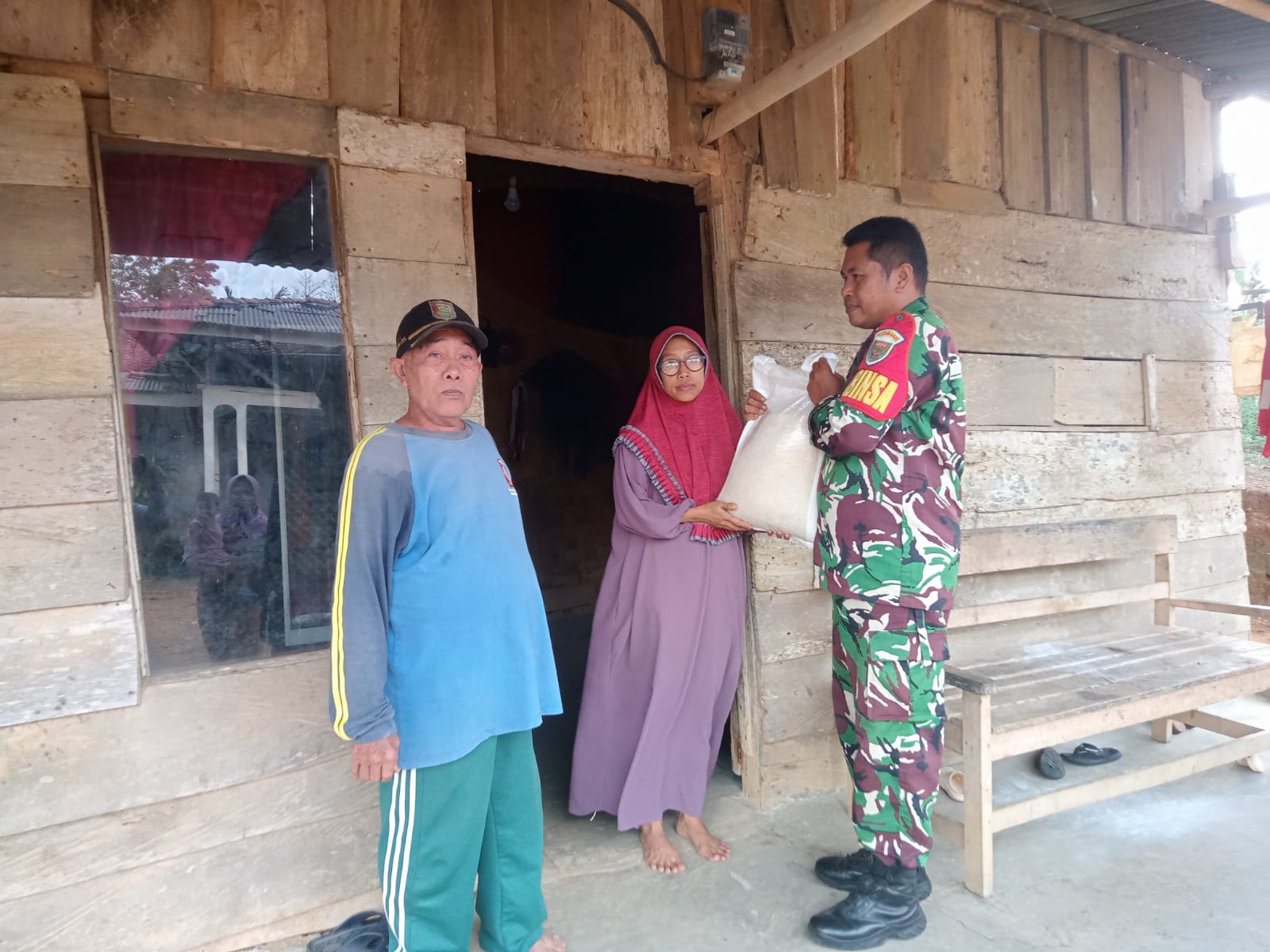Bantuan berupa sembako yang kami berikan untuk warga binaan ini sebagai bentuk perhatian TNI khususnya babinsa terhadap masyarakat yang kurang mampu,”ucap Serda Pujiyanto”.