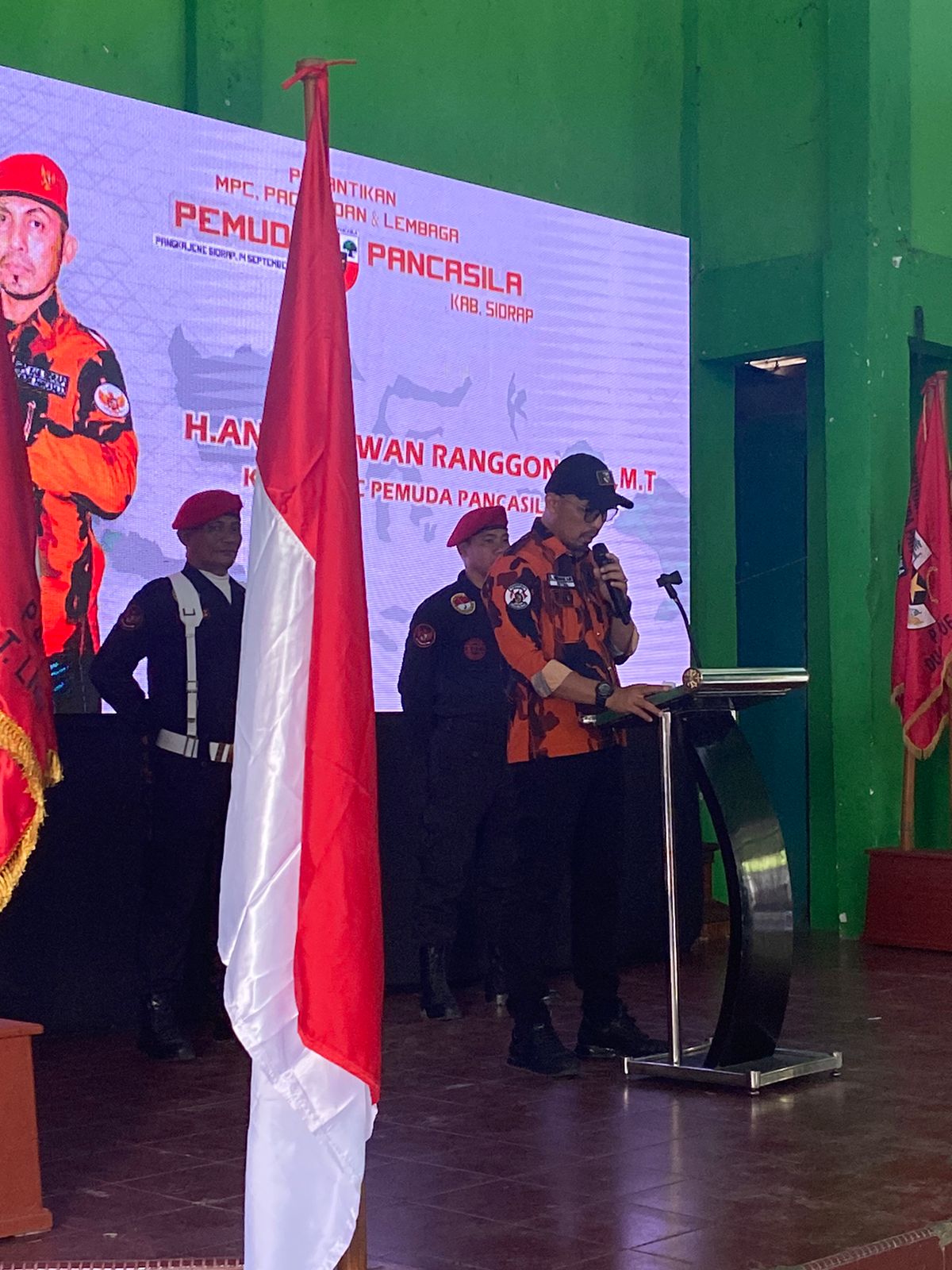 Pelantikan Nirwan bersama Pengurus Majelis Pimpinan Cabang PAC Badan dan Lembaga Pemuda Pancasila Sidrap dipimpin Ketua MPC PP Sulsel, St Diza Rasyid Ali di Gedung Juang 45, Kelurahan Pangkajene, Kecamatan Maritengngae.