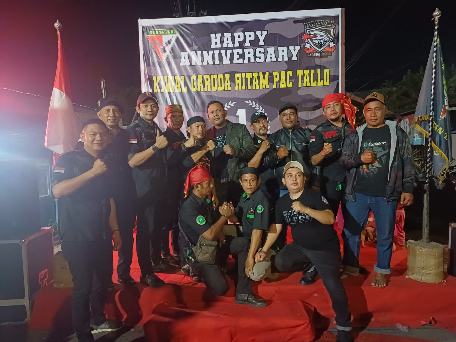 Menurut ketua pimpinan anak cabang Tallo,M.RUSLAN R mengatakan hari ini kami sangat berbahagia karena merayakan Anniversary ke 1 Kiwal Garuda Hitam pimpinan anak cabang Tallo, semoga kedepan kiwal semakin Jaya,” begitu ujar .