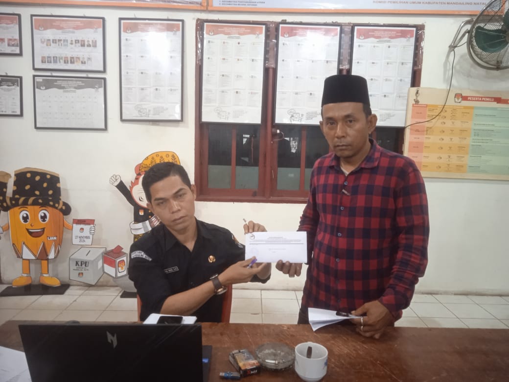 Poto Syamsuddin Nasution Ketua DPK FKI-1 Madina di KPU Madina Saat Menyerahkan Surat Tanggapan.