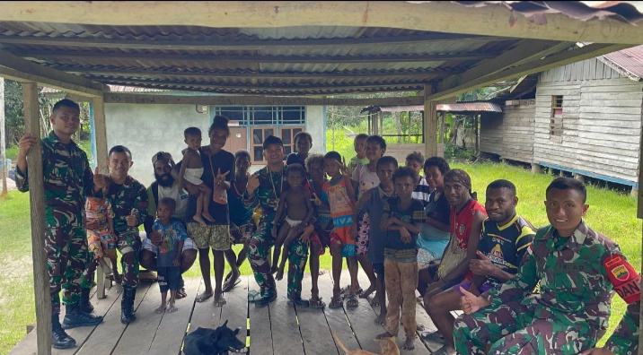Kabupaten Keerom KLTV INDONESIA.COM- Satgas Pamtas Yonif 122/TS, Pos Ampas yang dipimpin Letda Inf Togu Panjaitan melaksanakan kegiatan makan bersama warga dalam rangka Acara perpisahan di Kampung Ampas, Distrik Arso, Kabupaten Keerom, Papua.(81/09/2024).