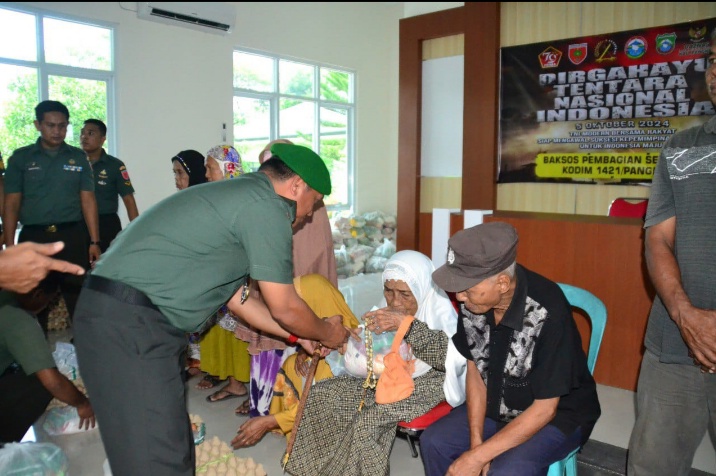 PANGKEP – KLTV INDONESIA.COM Bantuan Bansos dan Donor Darah serta Makan gratis diadakan oleh Dandim 1421/ Pangkep dalam rangka HUT TNI Ke-79 di alun-alun dengan masyarakat se Kab pangkep di Kantor Kodim 1421/ Pangkep, kelurahan Pa’doang doangan, kecamatan pangkajene, kabupaten Pangkep, Sabtu (21/9/2024).