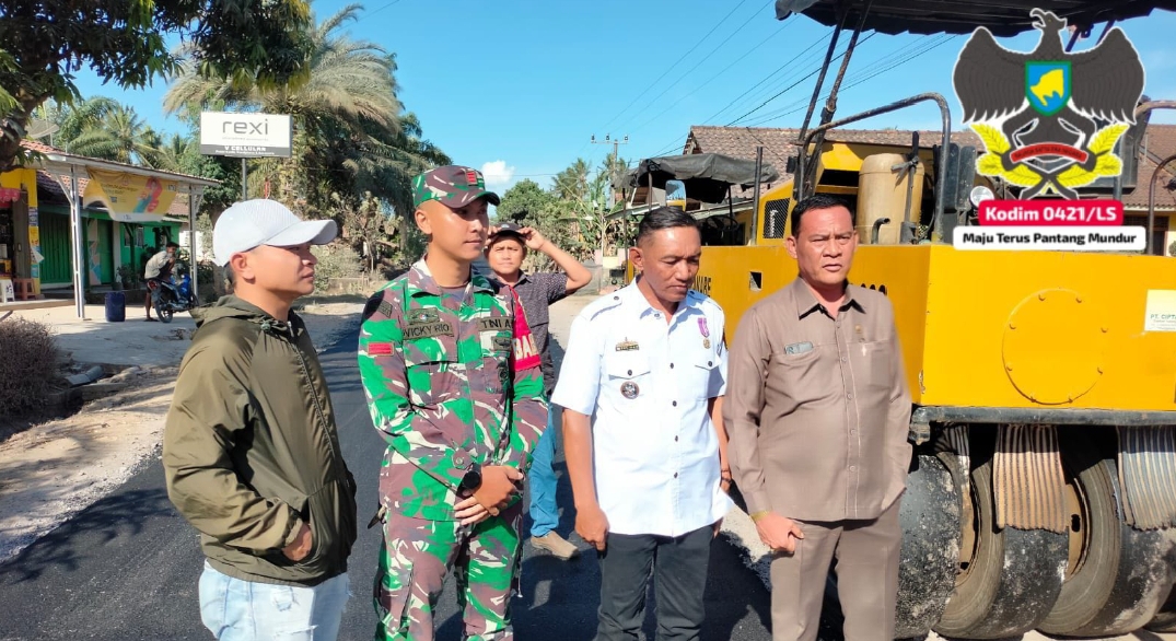 Klivetvindonesia,com. Pesawaran- Babinsa desa Roworejo Koramil 421-02/Gedong Tataan Kodim 0421/Lampung Selatan, Praka Vicki Rio Sandi laksanakan Monitoring wilayah sekaligus memantau kegiatan proyek perbaikan jalan hotmix yang berlokasi di jalan Utama desa Roworejo Kecamatan Negeri Katon, Kabupaten Pesawaran, Kamis (26/09/2024).