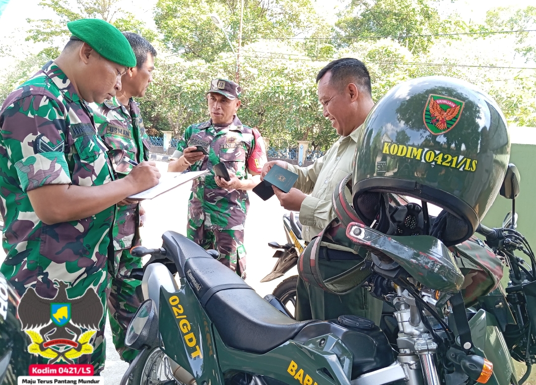 Setelah pelaksanaan apel pagi, Danramil melanjutkan kegiatan dengan melakukan pemeriksaan kendaraan dinas dan kendaraan pribadi personel. Langkah ini bertujuan untuk memastikan bahwa seluruh kendaraan yang digunakan oleh anggota Koramil 421-02/Gdt dalam kondisi baik, aman, dan layak operasional. Pemeriksaan meliputi kelengkapan surat-surat kendaraan, kondisi fisik kendaraan, hingga keamanan standar operasional kendaraan.
