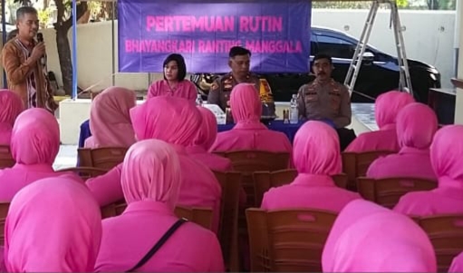 Makassar_Kepolisian Sektor Manggala Polrestabes Makassar dalam giat rutin pertemuan Bhayangkari ranting manggala kali ini berbeda yang dirangkaikan pelepasan AKP M. Nasir (Kanit Samapta) yang telah memasuki purna tugas, bertempat di teras Mapolsek Manggala Jln. Lasuloro Raya, Jumat (4/10/24) Sore