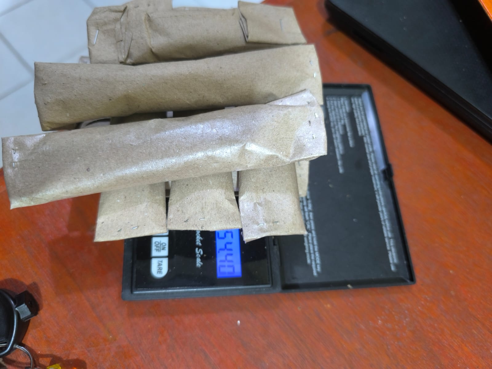 Saat di tangkap barang bukti yang berhasil diamankan petugas yaitu 9 (Sembilan) paket narkotika jenis ganja yang dibungkus kertas nasi warna coklat, 1 (Dua) bungkus kertas tiktak, 1 (Satu) unit handphone Realme Warna Merah dan 1 (Satu) unit sepeda motor Honda Beat Biru.