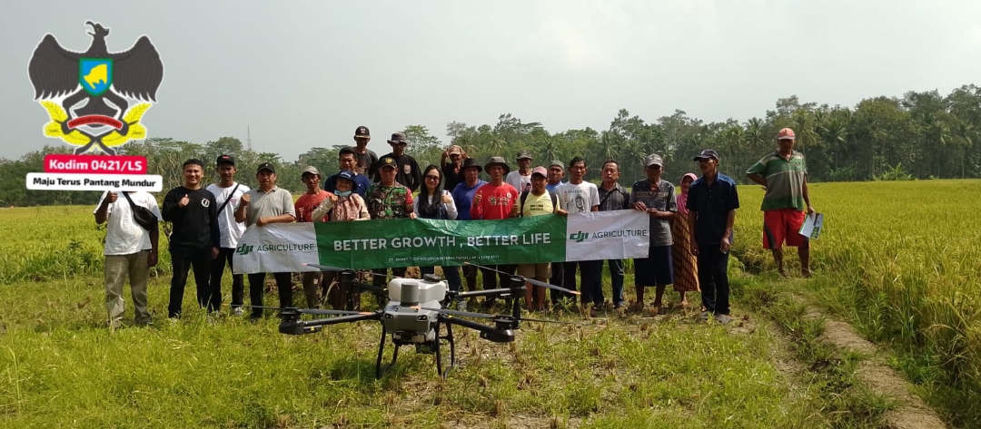 Demonstrasi penyemprotan dilahan pertanian diasumsikan untuk penyemprotan hama penyakit pada tanaman padi maupun pemupukan, Kegiatan ini bertujuan untuk mengenalkan teknologi pertanian kepada para petani sehingga proses dalam bertani lebih efisiensi baik waktu dan tenaga, dimana diketahui bahwa serangan hama ulat dan wereng yang selama ini kerap menyerang tanaman padi milik petani yang menyebabkan terjadinya Gagal Panen.