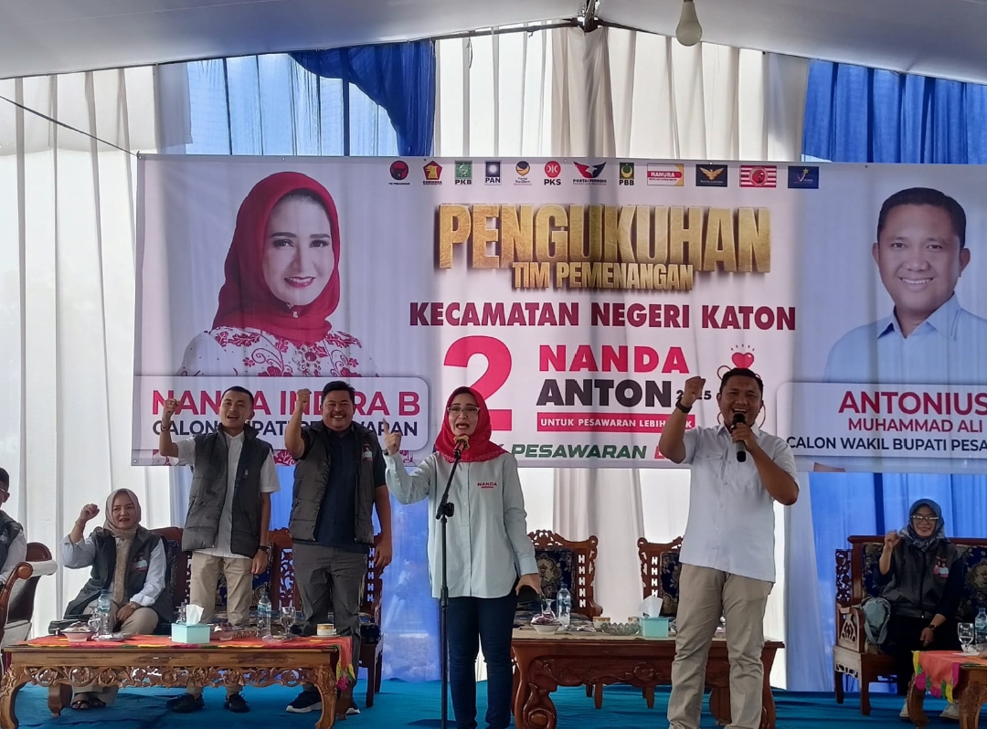 Sementara itu, Calon Bupati Pesawaran Nanda Indira mengajak seluruh tim pemenangan untuk bekerja maksimal dengan mengajak seluruh lapisan masyarakat di Kecamatan Negerikaton untuk memenangkan paslon Nanda – Anton.