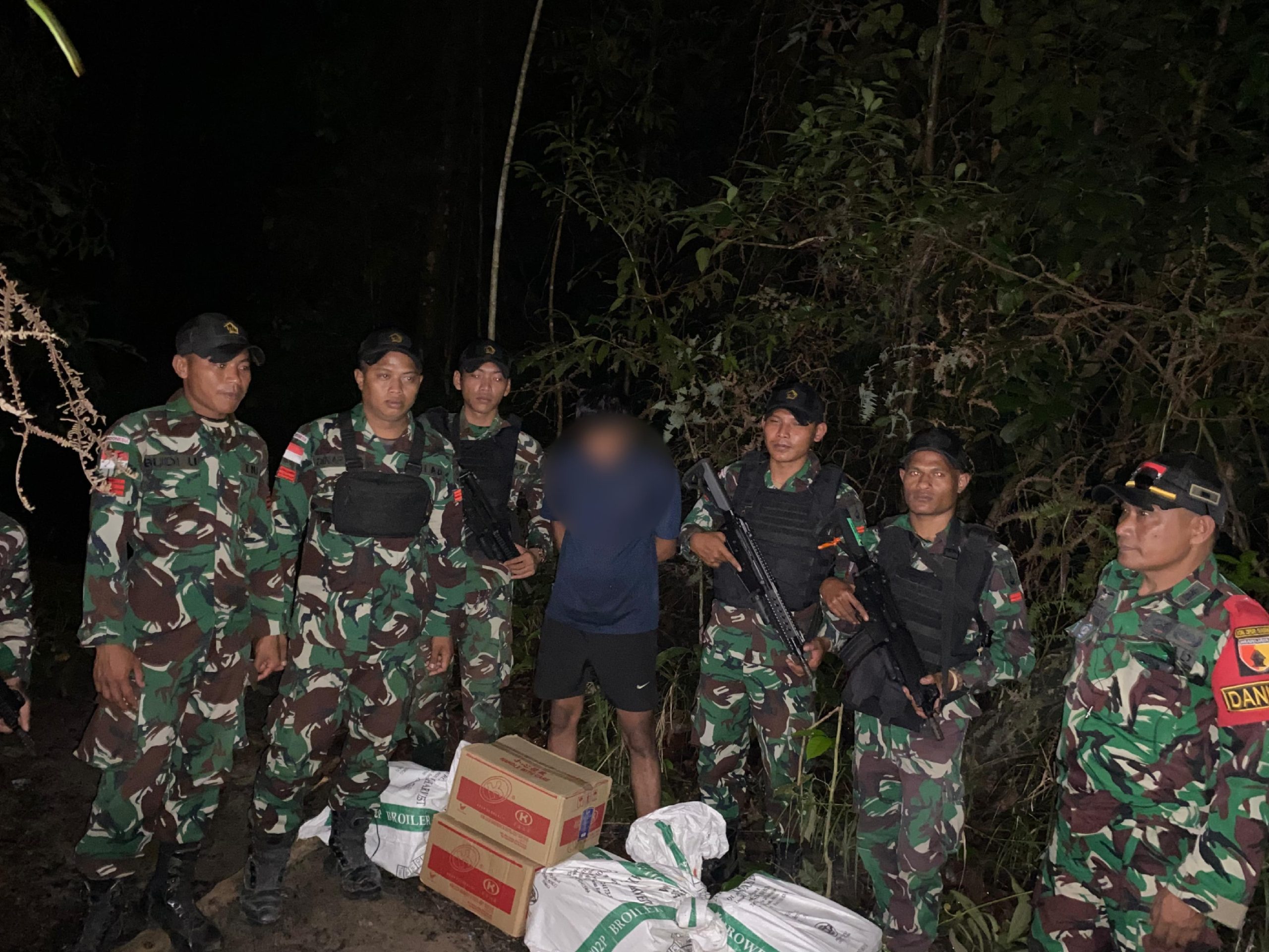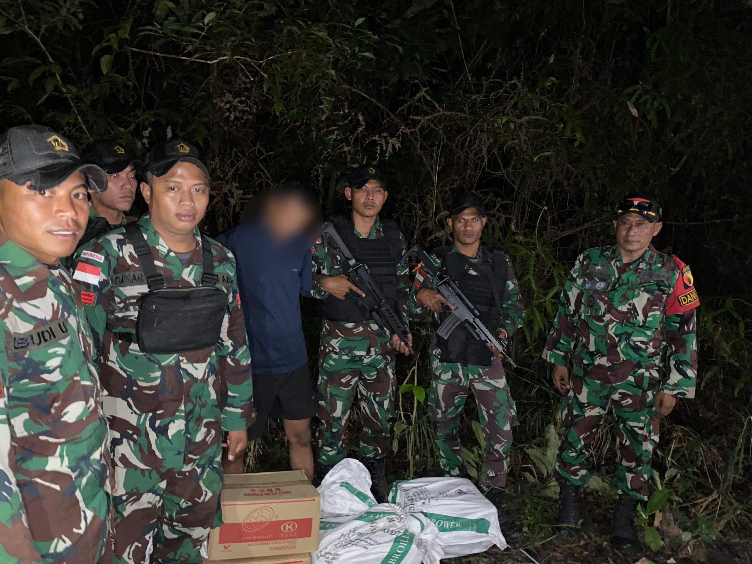 Sintang -KLTV INDONESIA –klivetvindonesia.com— Satgas Pamtas RI-Malaysia Yonzipur 5/ABW dari Pos Sei Kelik berhasil menggagalkan penyelundupan minuman keras ilegal jenis Brandy Sejumlah 5 Dus (120 botol) di Desa Sungai Kelik Kecamatan Ketungau Hulu, Kabupaten Sintang, Kalimantan barat, Minggu (13/10/2024).
