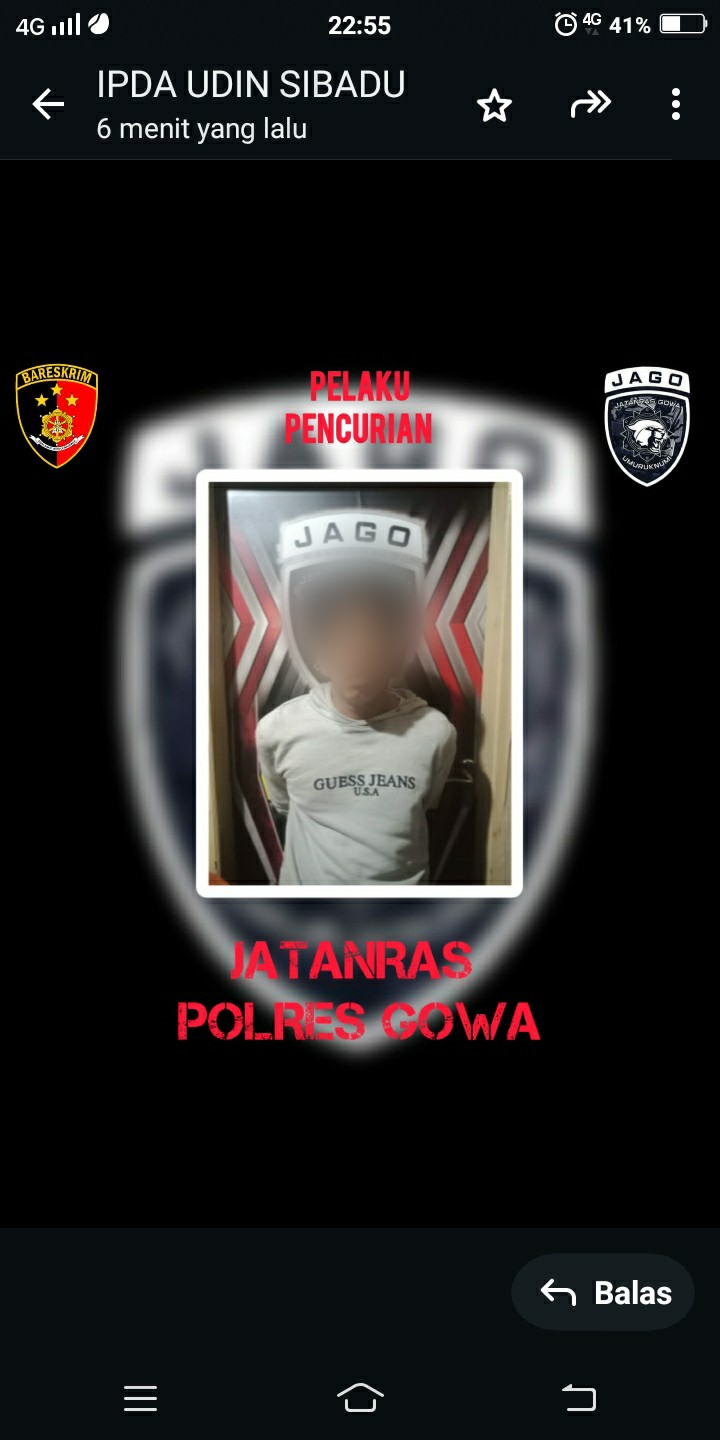 Korban pencurian, Yusuf Se’re (49), yang bekerja sebagai sopir, melaporkan kehilangan sepeda motor Honda GL Pro dengan nomor polisi DD 2272 ZE. Motor tersebut diparkir di teras rumah orang tuanya di Desa Parigi, Kecamatan Tinggimoncong, Kabupaten Gowa.