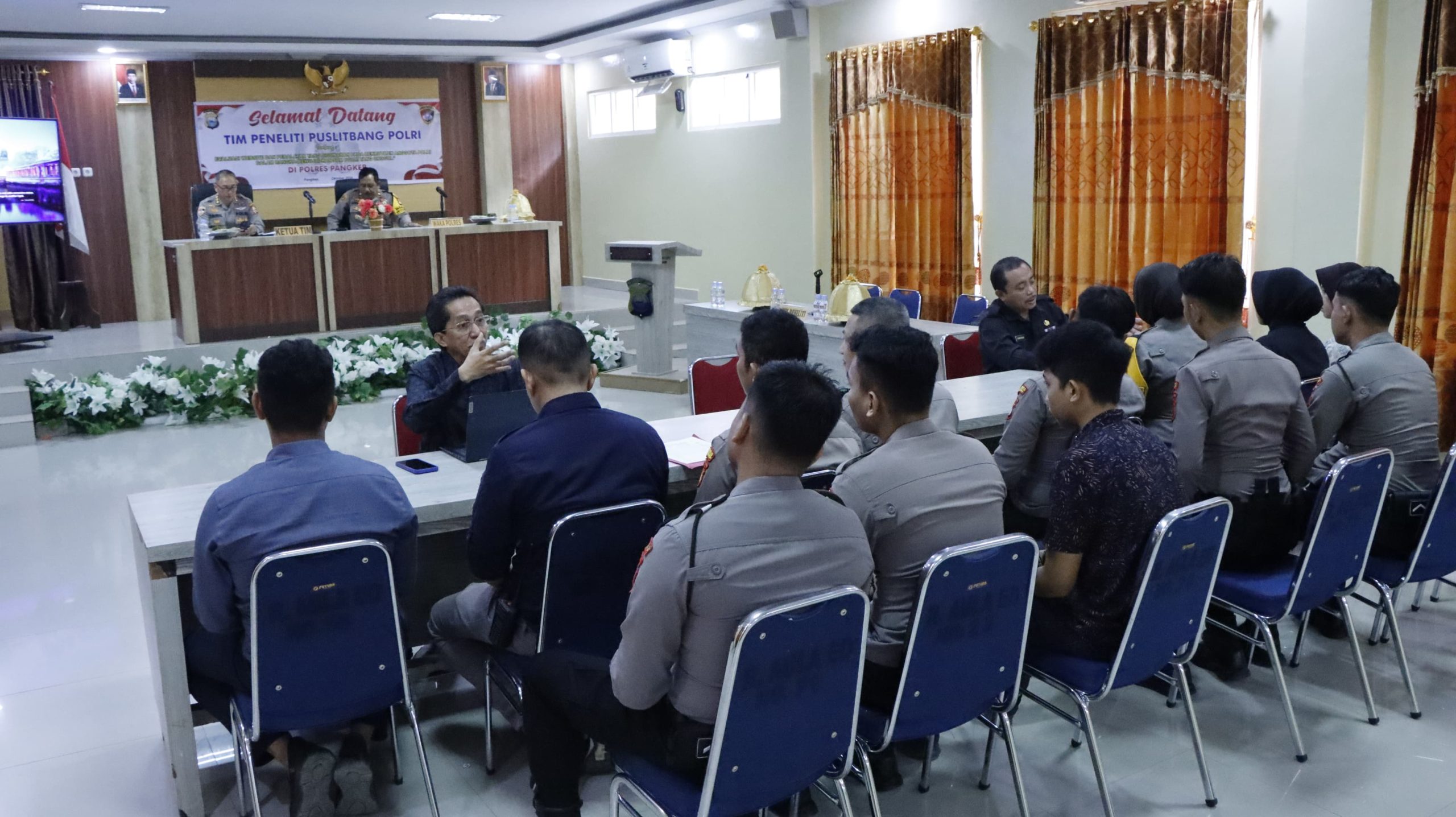 Kegiatan penelitian dipimpin Ketua Tim Puslitbang Kombes Pol SYAHRIAL M. Said, S.I.K., didampingi Anggota Tim Penelitian Puslitbang yaitu Pembina TK. I Ahmad Munif, S.H., M.Si., Penda Dessy Ariyani, A.Md., dan Dr. Drs. Suryadi M.T., serta Tim Pendamping dari Polda Sulsel sebanyak 4 (empat) personel yaitu Iptu Makmur, Briptu Citra, Bripda Maulana dan Bripda Dilla, berlangsung di Aula Polres Pangkep, Selasa (15/10/2024).