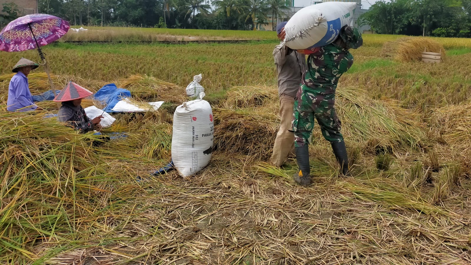“Saya berterima kasih sekali pada Bapak Babinsa sampai-sampai beliau dengan sigapnya memikul karung padi ketika proses perontokan selesai, karna kami masih menggunakan cara manual. Mudah-mudahan Bapak Babinsa selalu di berikan kesehatan serta bentuk kepedulian beliau jadi ladang pahala.”ucap nya