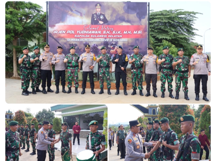 Selain itu, Kapolda Sulsel juga menyampaikan rasa terima kasihnya atas dukungan yang diberikan oleh Divif 3 Kostrad selama ini dalam menjaga keamanan wilayah Sulawesi Selatan. Kunjungan ini diharapkan semakin mempererat hubungan antara Polri dan TNI demi mewujudkan keamanan dan ketertiban yang berkelanjutan.