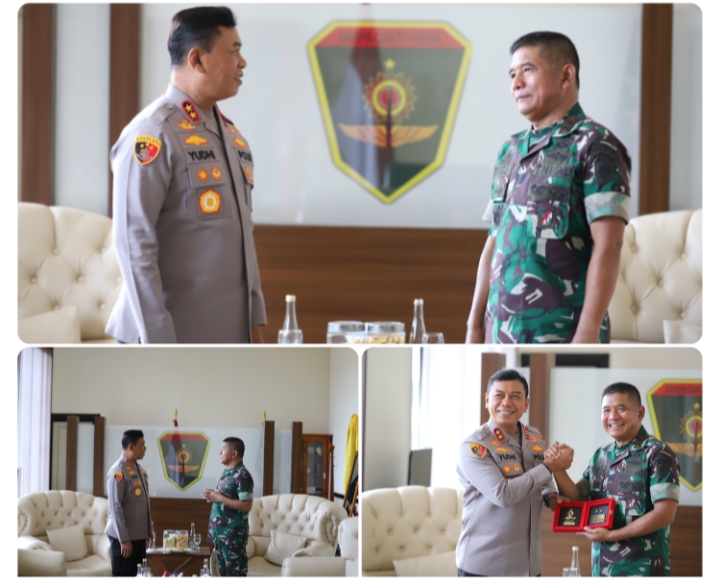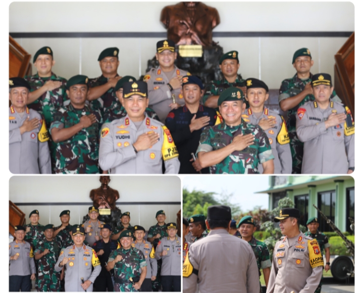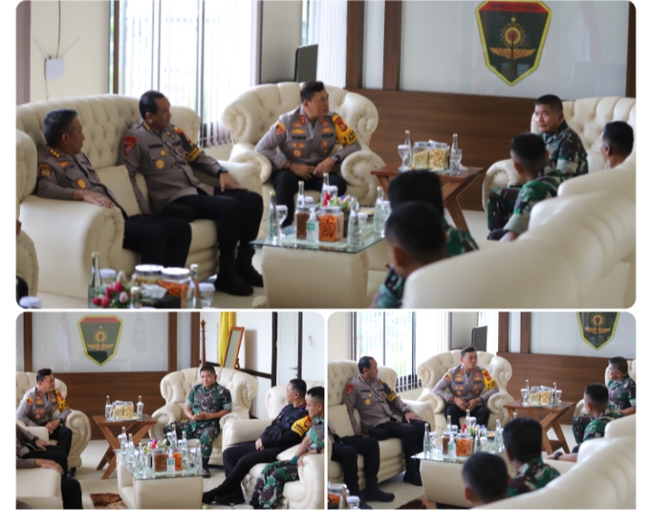 Silaturahmi ini berlangsung dengan suasana penuh keakraban, dan diakhiri dengan foto bersama dan pemberian cenderamata sebagai simbol kuatnya hubungan antara TNI dan Polri dalam menjaga keamanan nasional.