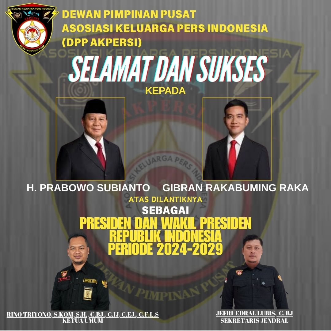 AKPERSI Mengucapkan Selamat Atas Pelantikan Presiden Republik Indonesia Prabowo Subianto dan Gibran Rakabuming Raka sebagai Wakil Presiden