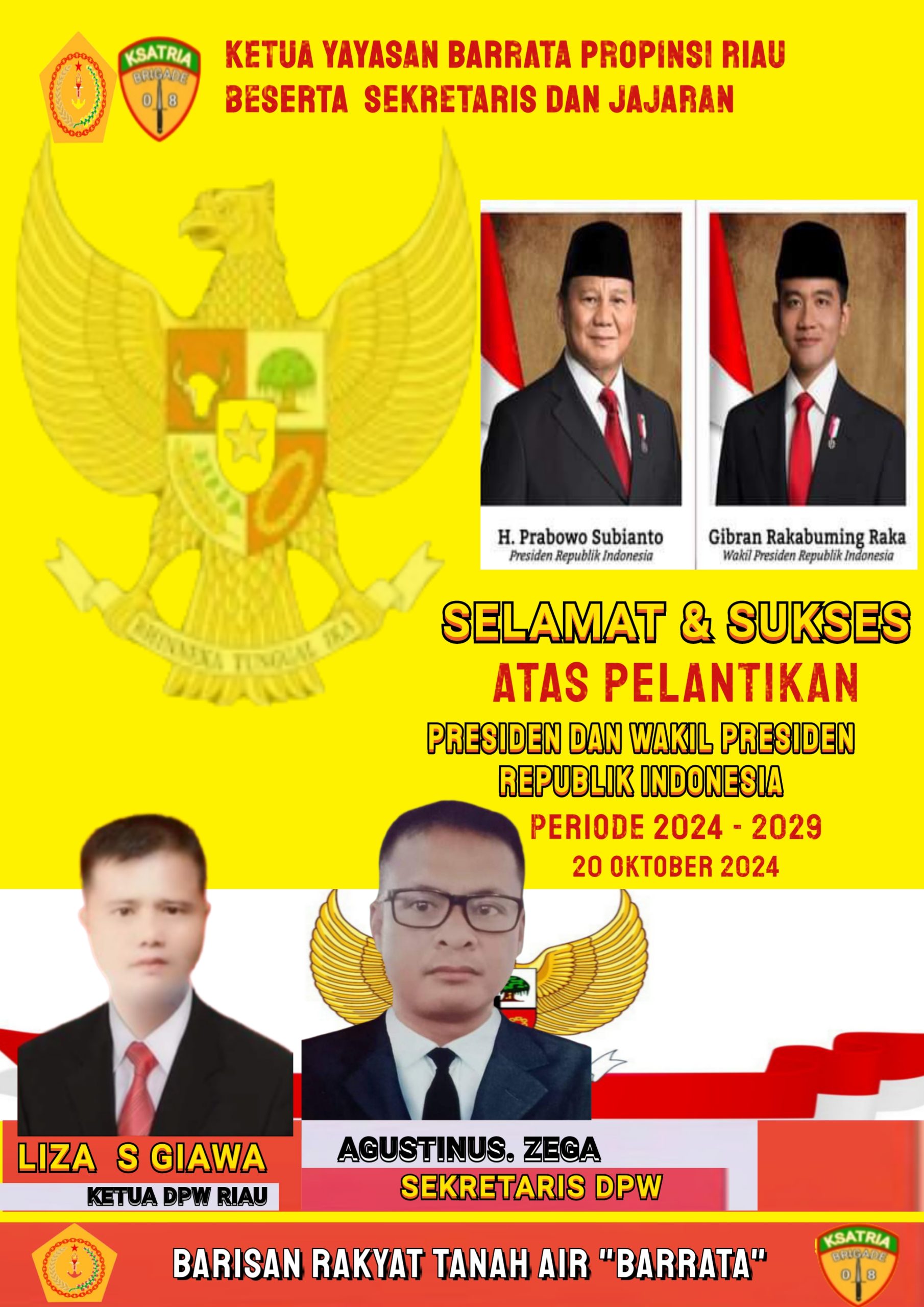 Riau,|| KLITV INDONESIA.com – Seluruh Pimpinan dan Pengurus, Yayasan barisan rakyat tanah air Barrata ,mengucapkan :