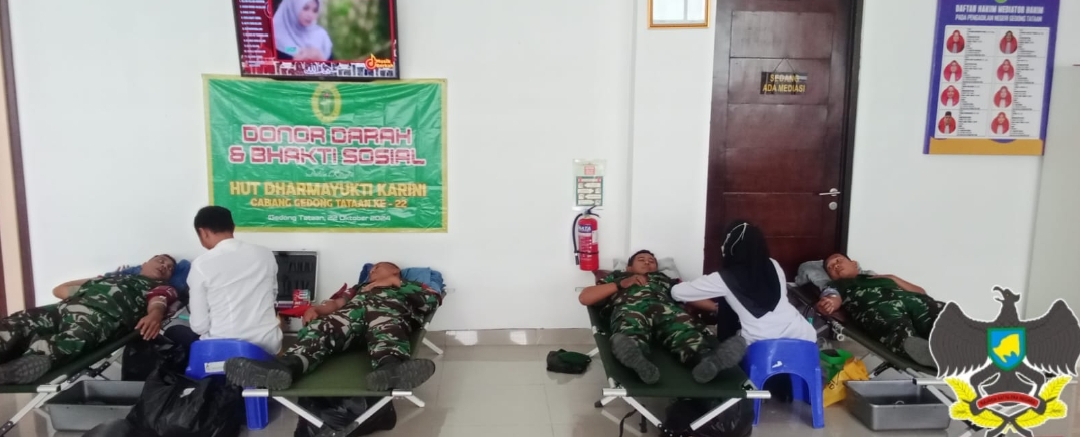 Klivetvindonesia,com. Pesawaran- Wujud kepedulian terhadap sesama, Babinsa Koramil 421-02/Gdt Peltu Rivoldy Beserta 5 anggota lainnya mengikuti donor darah yang diadakan oleh Pengadilan Negeri Pesawaran bersama PMI Bandarlampung bertempat di aula Kantor Pengadilan Negeri Kabupaten Pesawaran, selasa (22/10/2024)