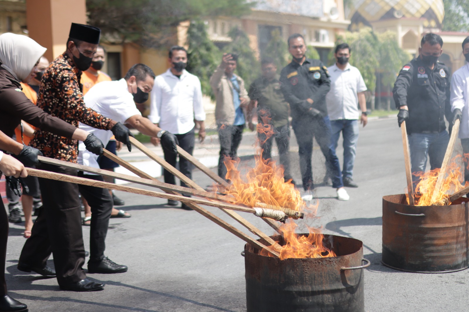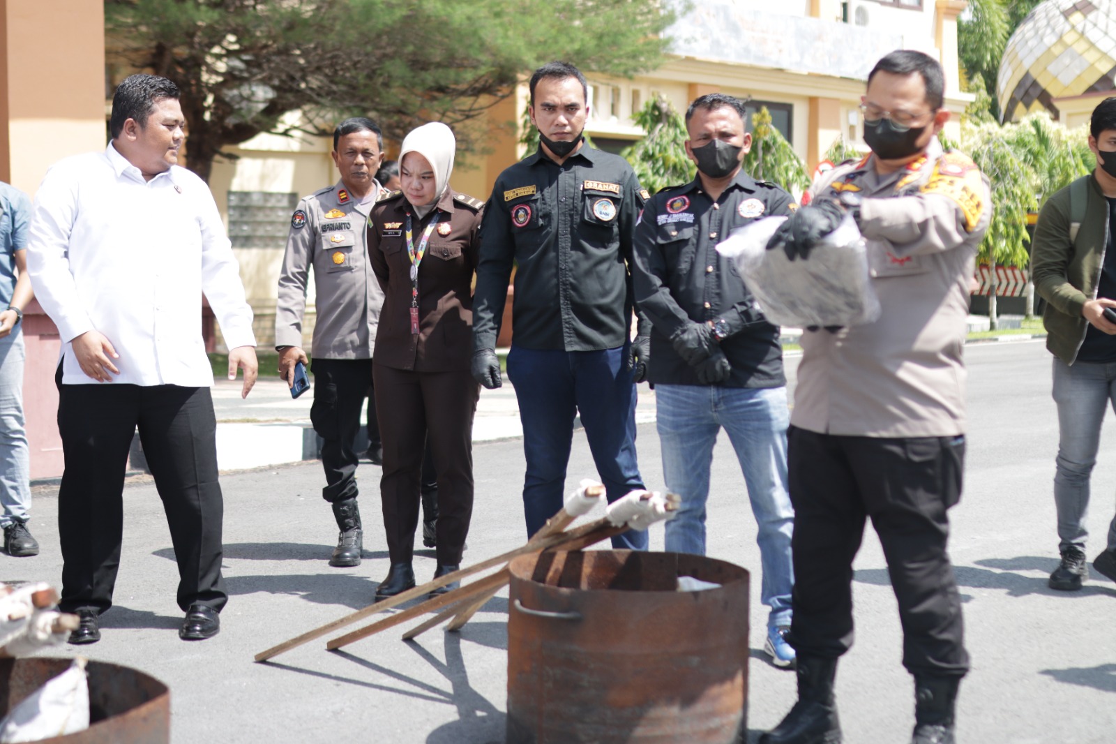 Pemusnahan tersebut dipimpin langsung oleh Kapolres Siak AKBP Asep Sujarwadi.S.I.K.M.SI di Halaman Mapolres Siak, Kecamatan Dayun, Senin (21/10/2024) pagi.
