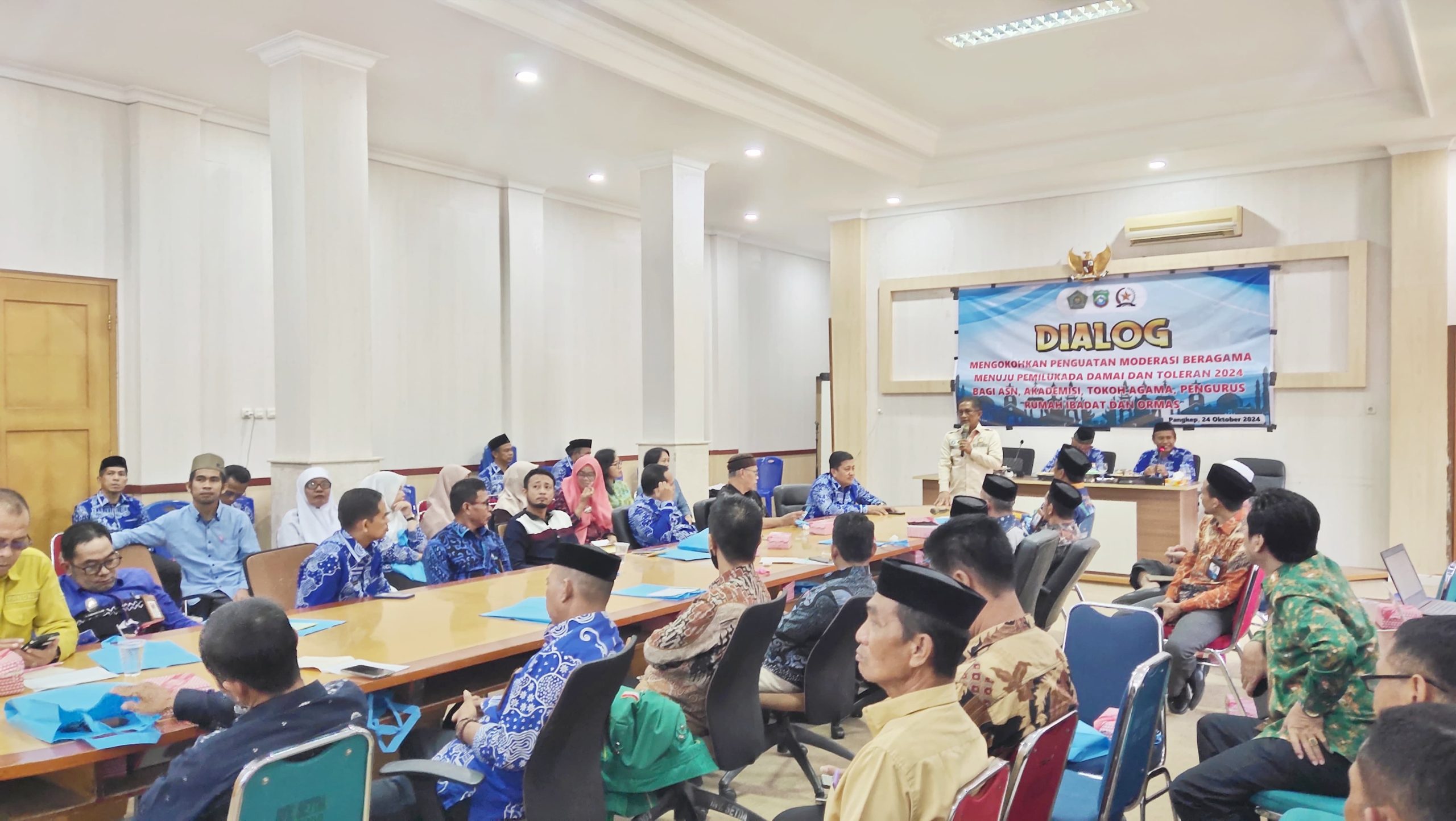 –klivetvindonesia.com— Forum Komunikasi Umat Beragama(FKUB) Pangkep melaksanakan dialog penguatan moderasi beragama menuju pemilukada damai dan toleran bagi ASN, Akademisi, tokoh agama pengurus rumah ibadah dan ormas di Ruang Rapat Wakil Bupati Ppngkep, Kamis (24/10/2024)