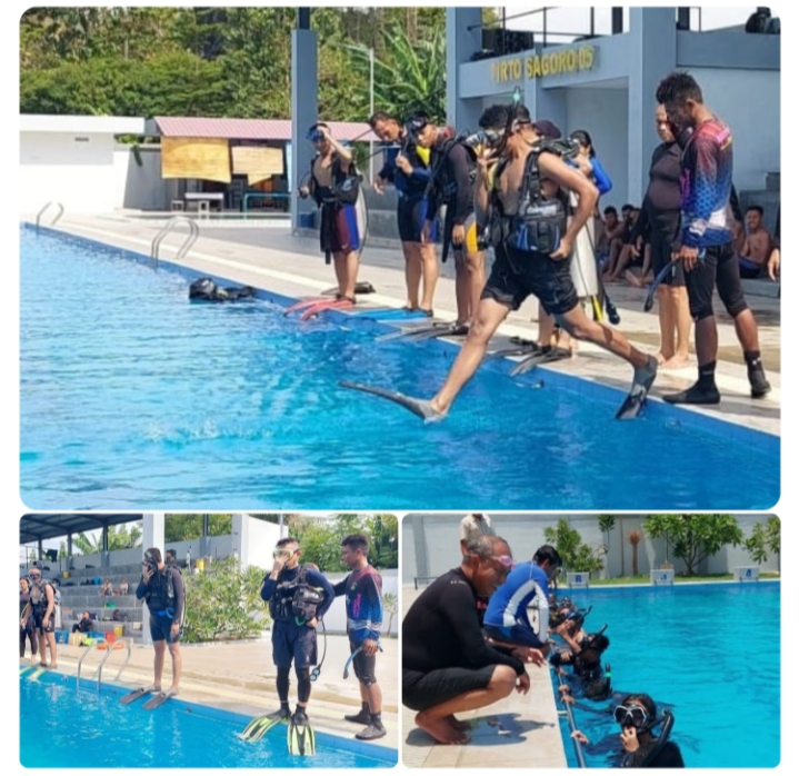 –klivetvindonesia.com– TNI AL, Dispen Kormar (Makassar) – Dalam upaya meningkatkan kemampuan taktis dan kesiapan operasional serta memperkuat sinergi antar satuan, prajurit Yonmarhanlan VI Makassar memberikan pelatihan materi selam dasar kepada prajurit muda Satuan Lintas Laut Militer (Satlinlamil) 3. Kegiatan ini berlangsung di Kolam Renang Tirto Segoro 5, Mako Lantamal VI, Jalan Yos Sudarso No. 308, Kamis (24/10/2024).