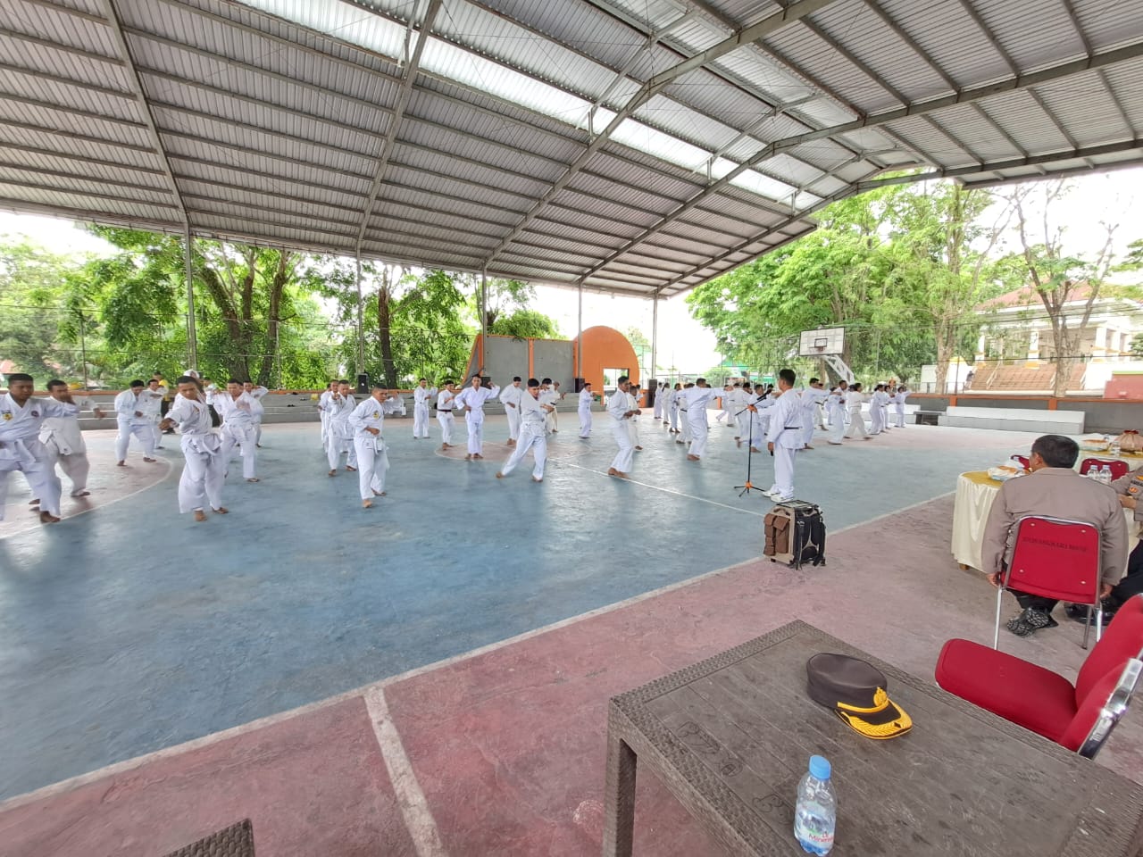 Kabagbinkar AKBP Santiaji Kartasasmita didampingi Kasubbagpangkat Bagbinkar Kompol Asriani, Paurkompoten AKP Alyas, Paurpangkat Iptu Herlina Umar, Pamin Mutjab Iptu Aswar membuka pelaksanaan ujian beladiri.