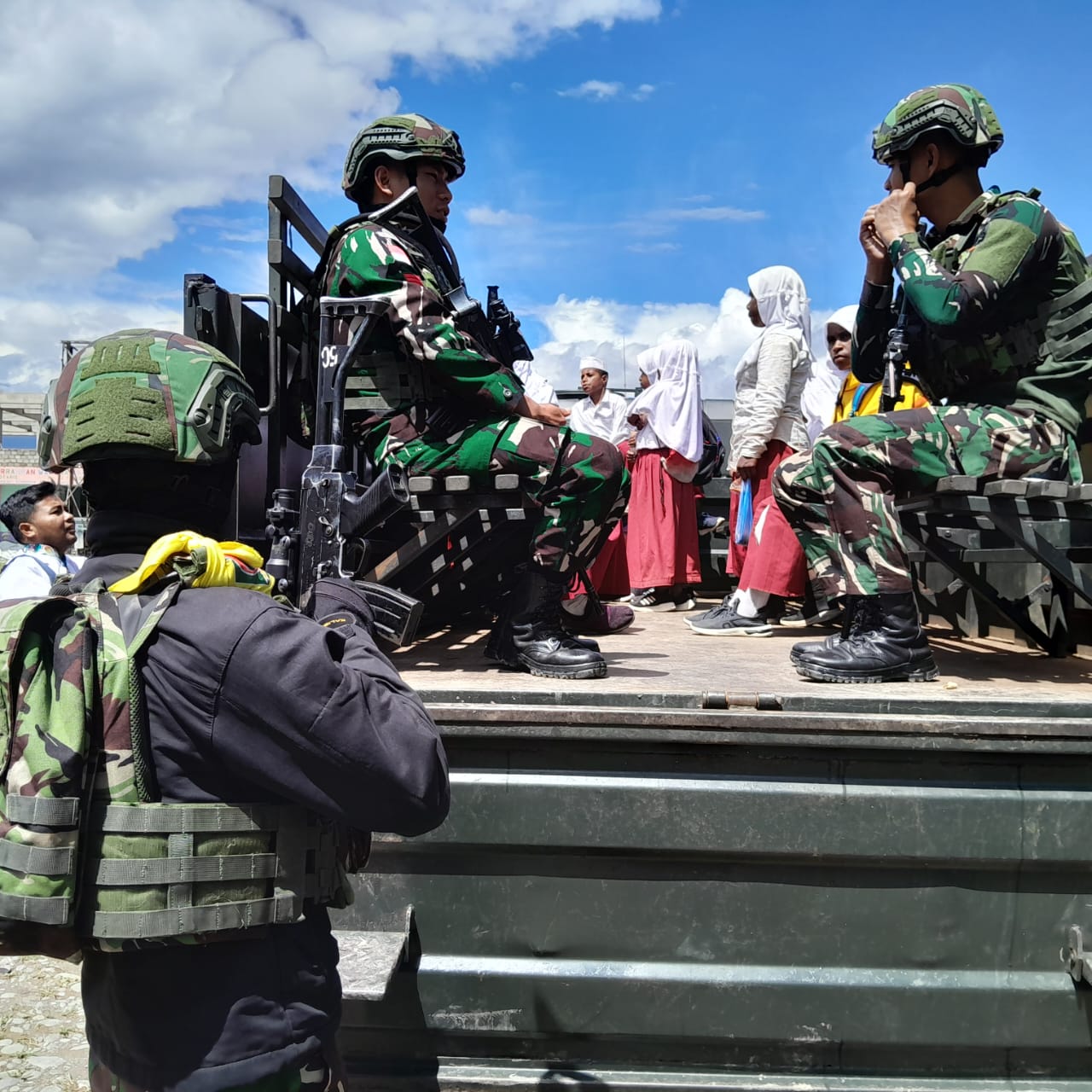 –klivetvindonesia.com– Jayawijaya – Dalam rangka meningkatkan semangat belajar anak sekolah, Pos Walesi Satgas Yonif 641/Beruang membantu antar jemput siswa MI Merasugun Asso Walesi ke SMK Yapis Wamena di Distrik Walesi, Kabupaten Jayawijaya, Provinsi Papua Pegunungan, (30/10/2024).