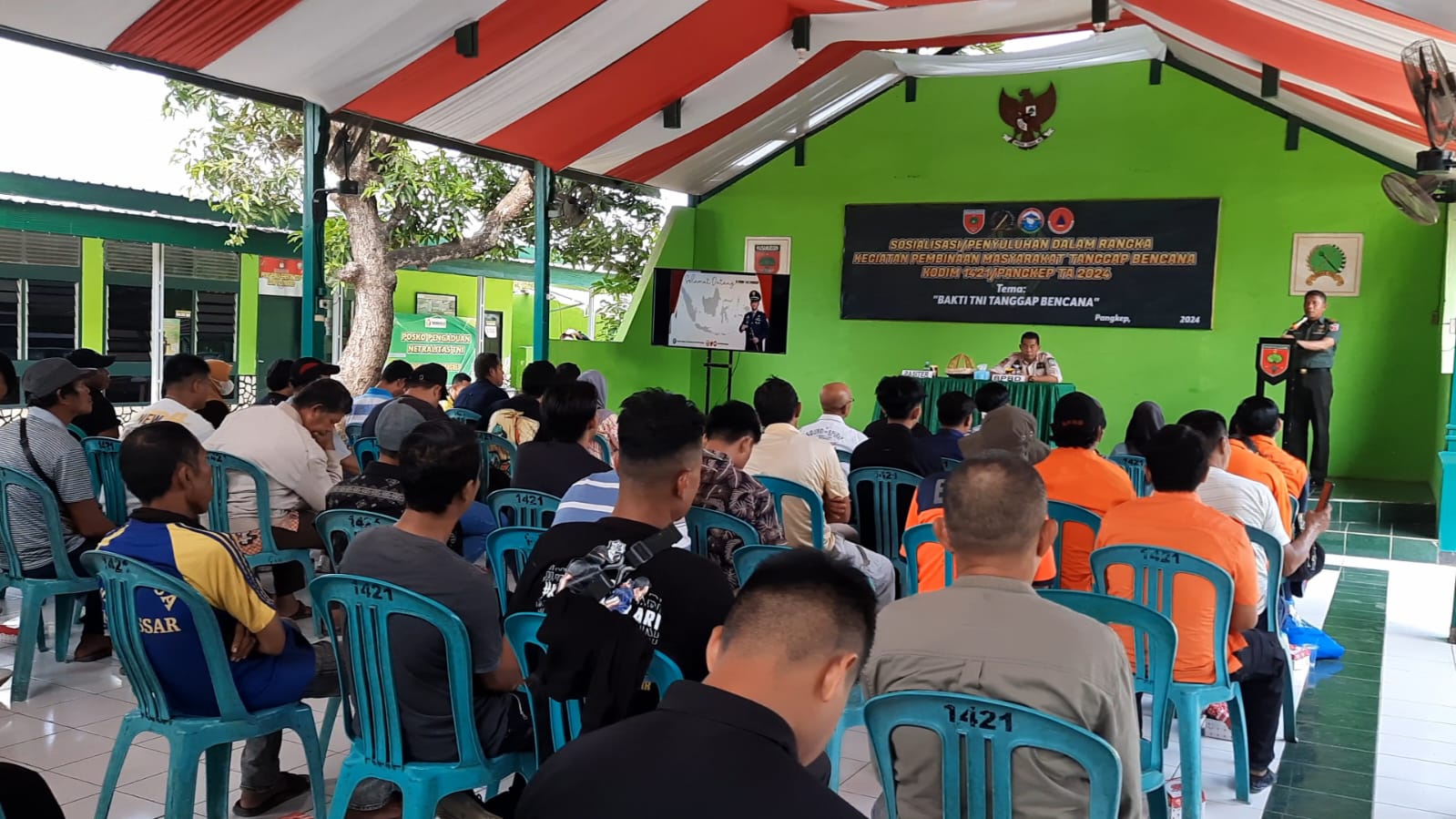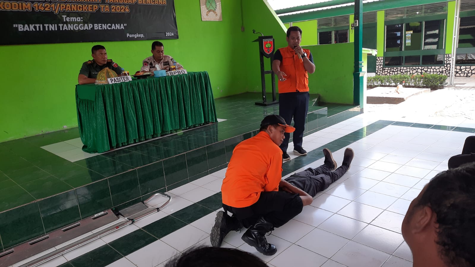 Kapten Inf Muh Nawir, Pasiter Kodim 1421/Pangkep, mewakili Dandim 1421/Pangkep, menjadi narasumber dalam kegiatan ini. Hadir pula Muslimin. S. Pd, Kepala BPBD Kabupaten Pangkep, serta perwakilan dari BPBD, staf Kodim, dan masyarakat setempat.